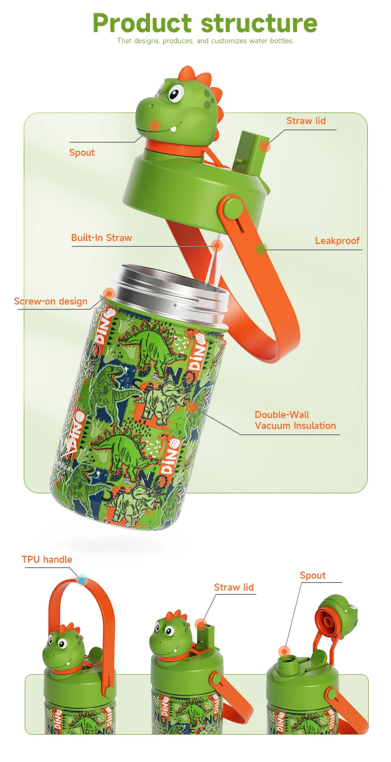 2027 Kids Water Bottle With Straw Lid Vacuum Insulated
