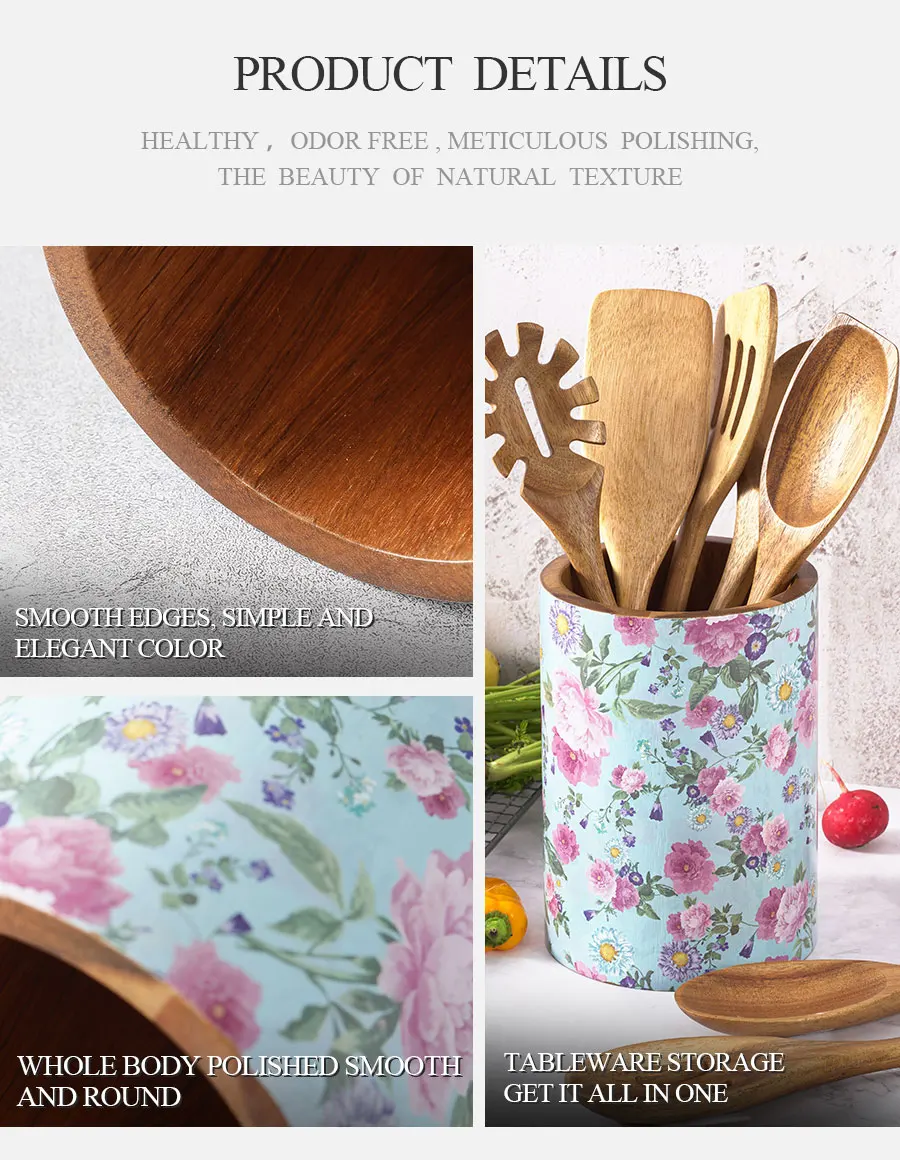 Customization Kitchen Wooden Cutlery Basket Utensil Holder
