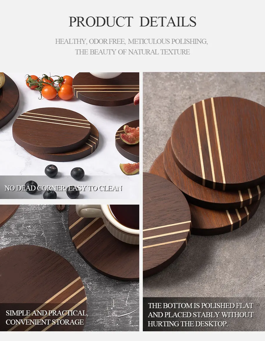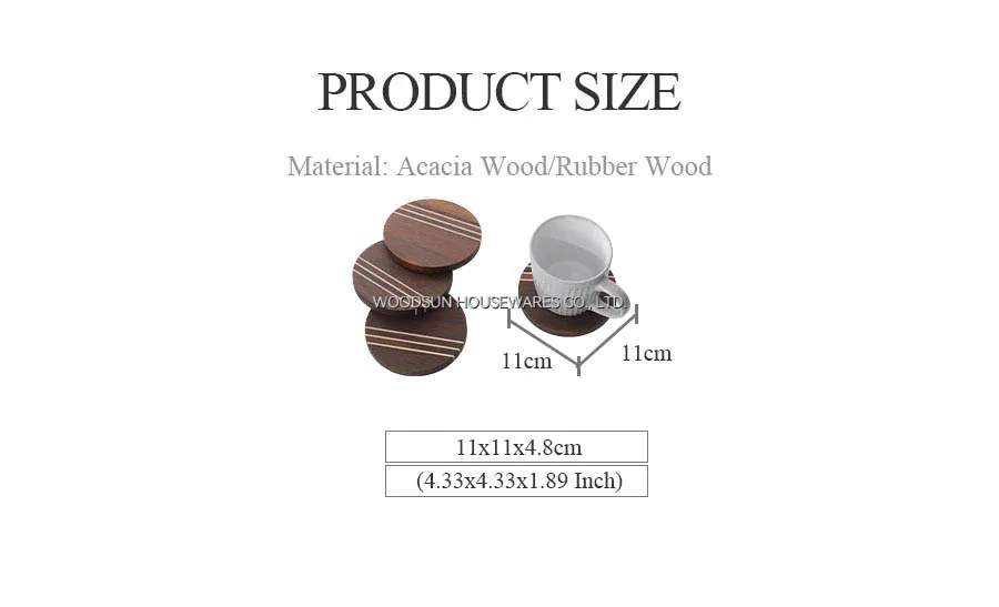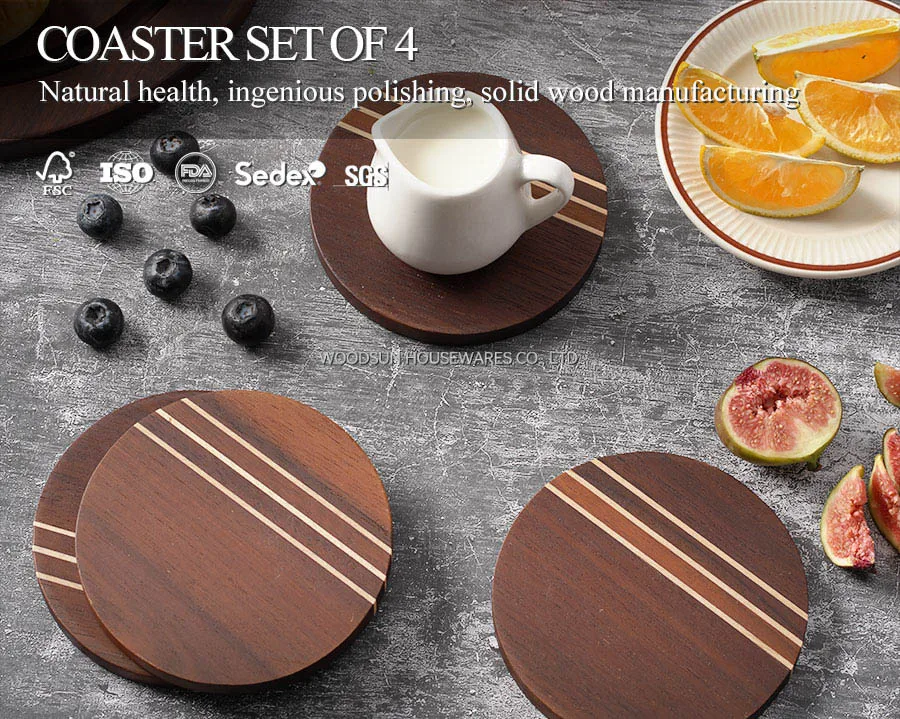 Woodsun 2025 Carbonized Acacia Coffee and Tea Coaster Wood Coaster Set of 4