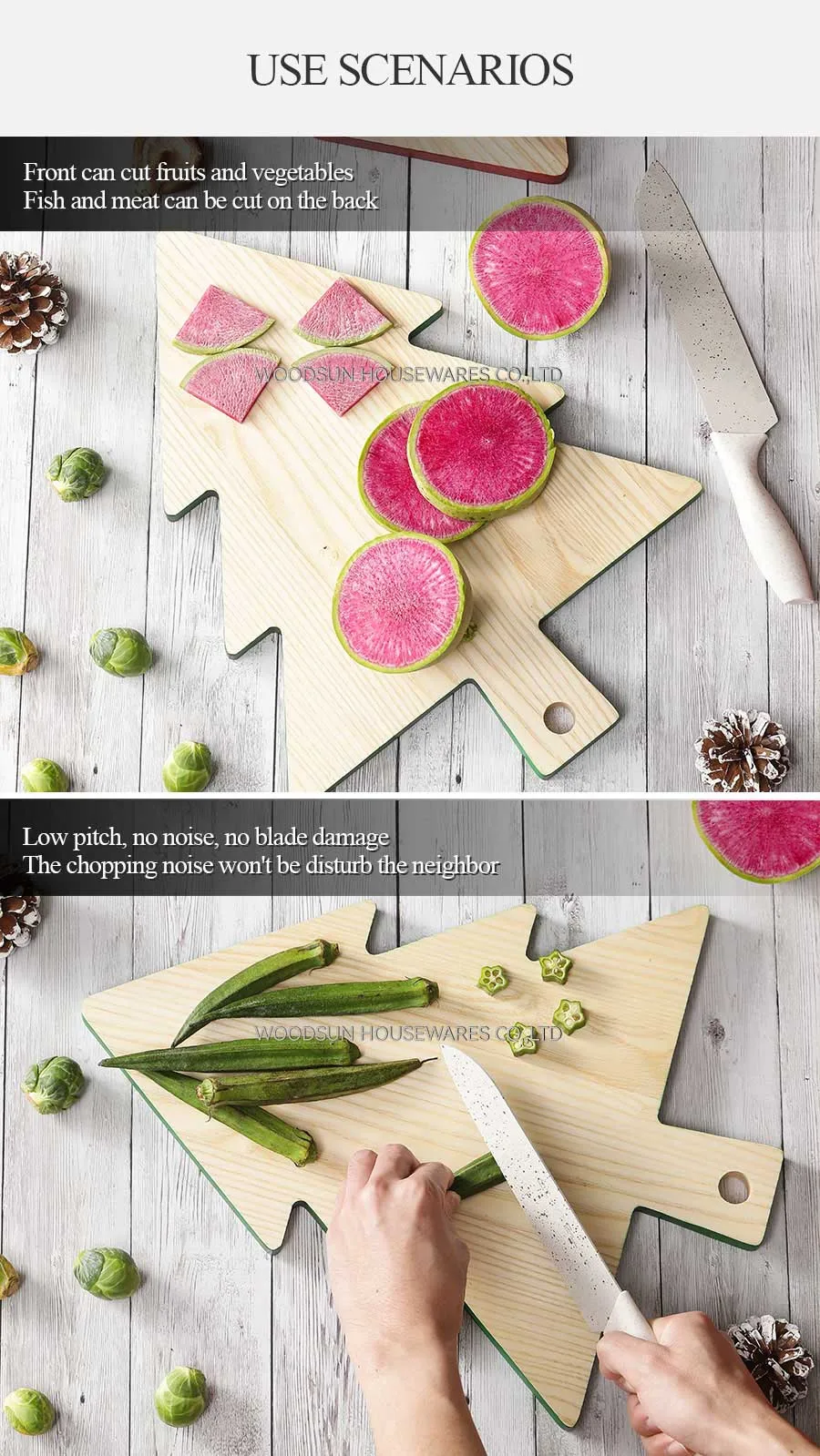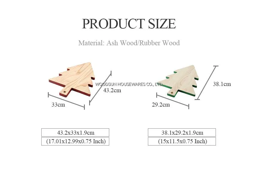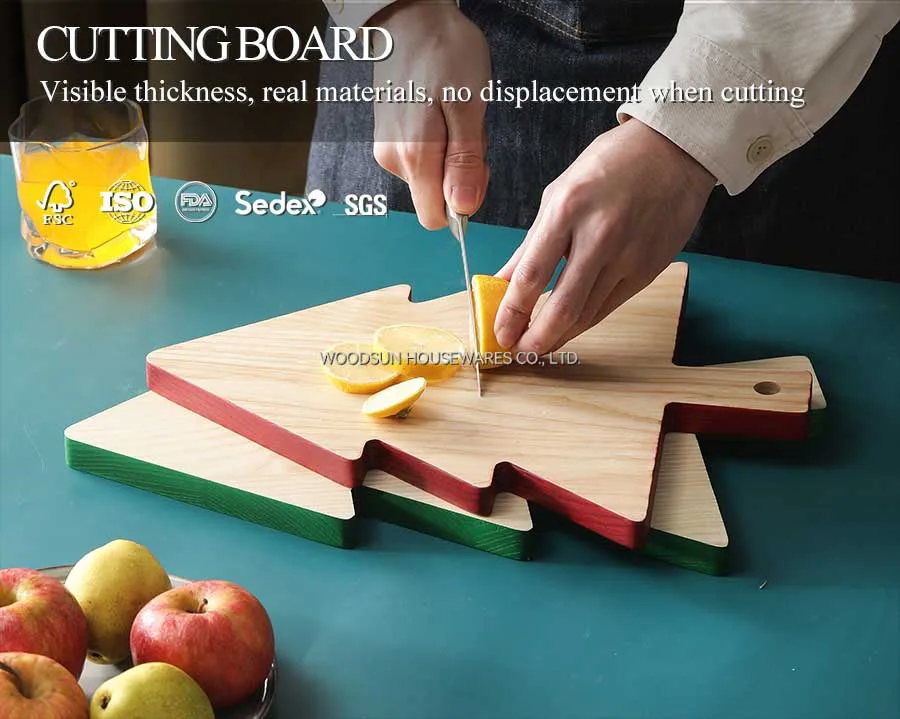 Woodsun 2025 Christmas Tree Shape Ash Rubber Wood New Design Kitchen Cutting Board
