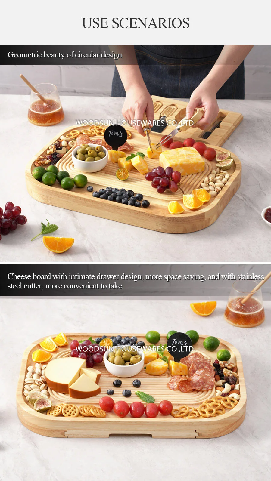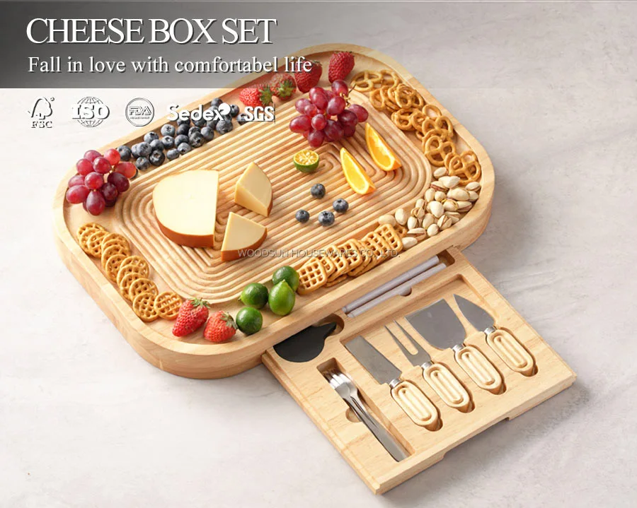 Woodsun 2025 Gift Modern Stripes Cheese Board Knife Set Cheese Trays