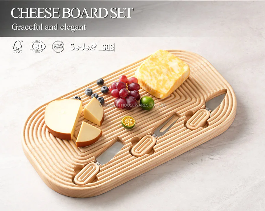 Woodsun 2025 Gift Modern Stripes Custom Shape Charcuterie Cheese Board For Friends
