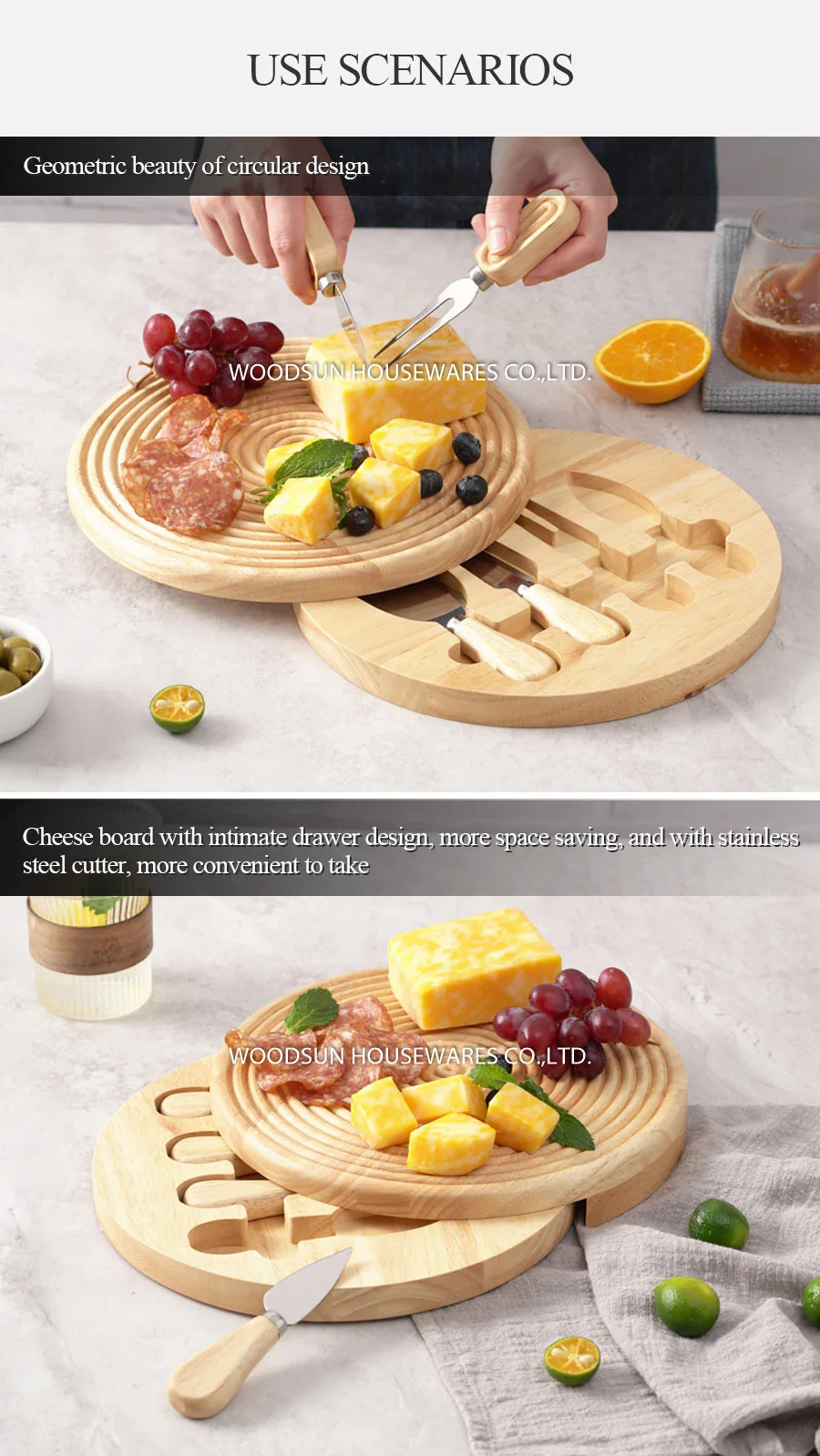 Woodsun 2025 Gift Modern Stripes Serving Cutting Cheese Board Charcuterie Board Box