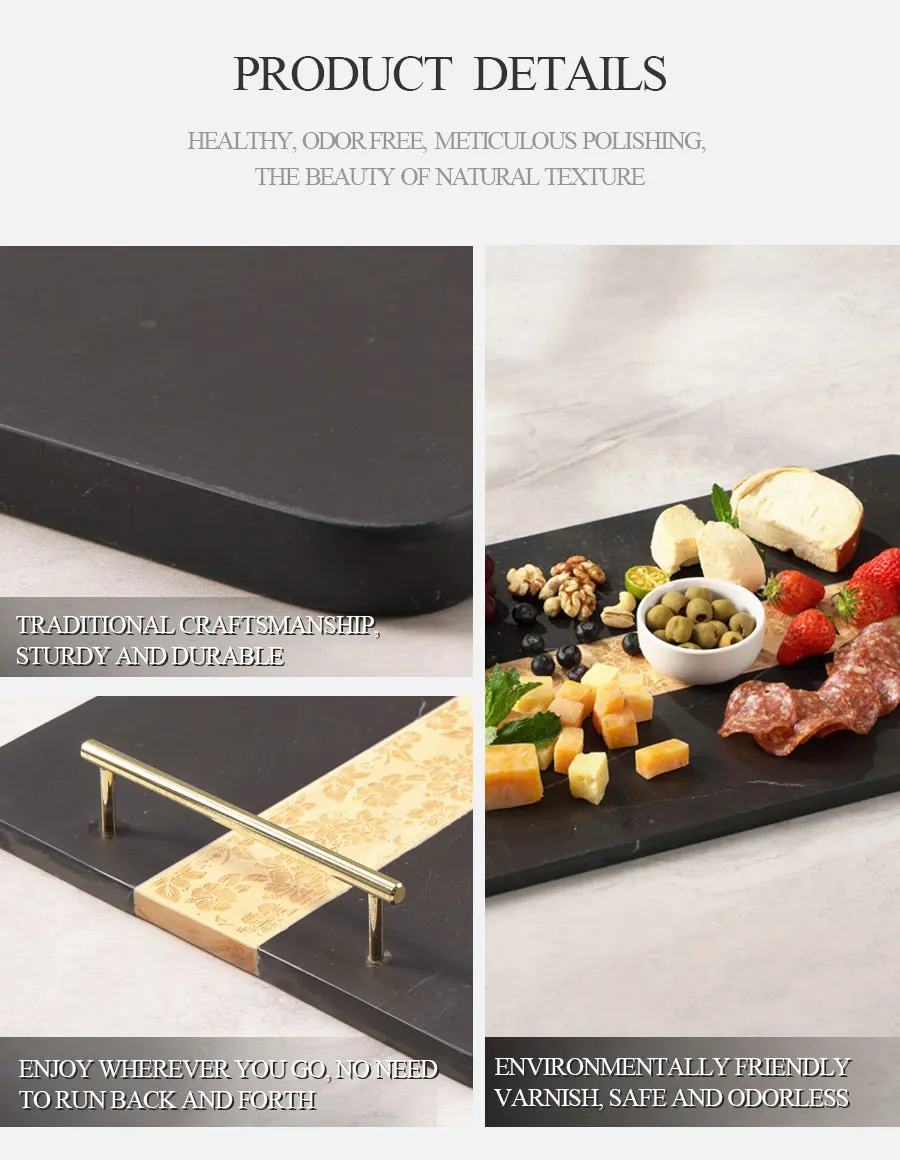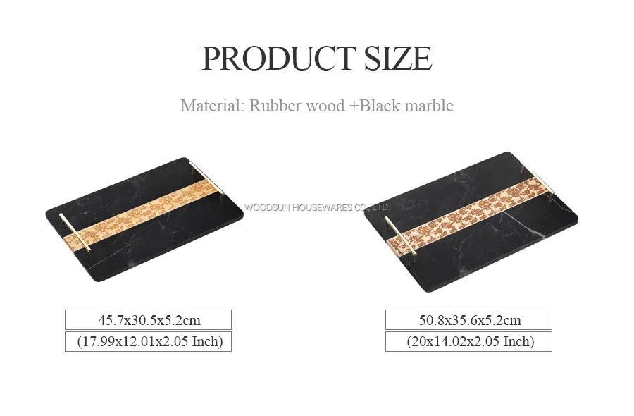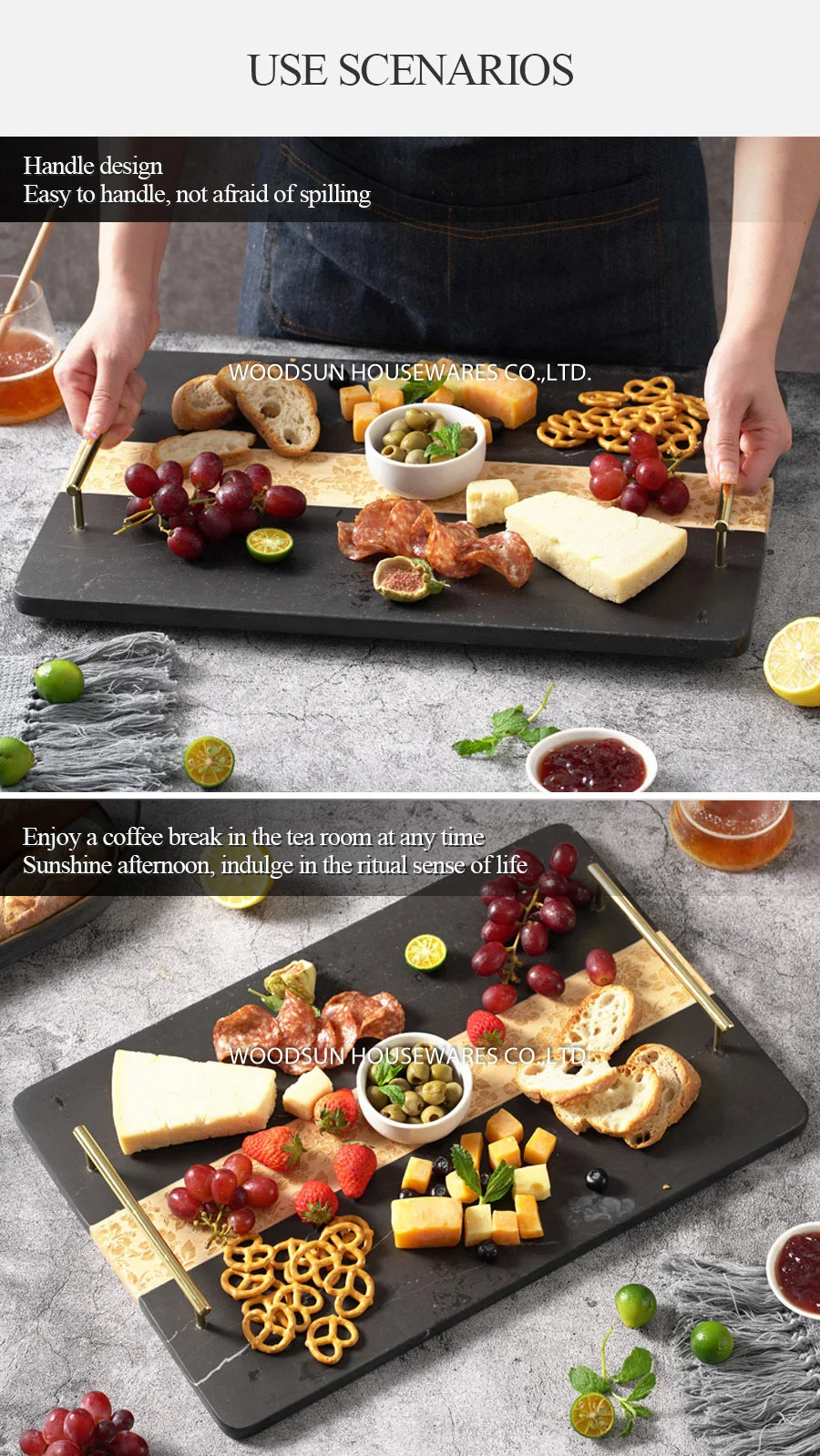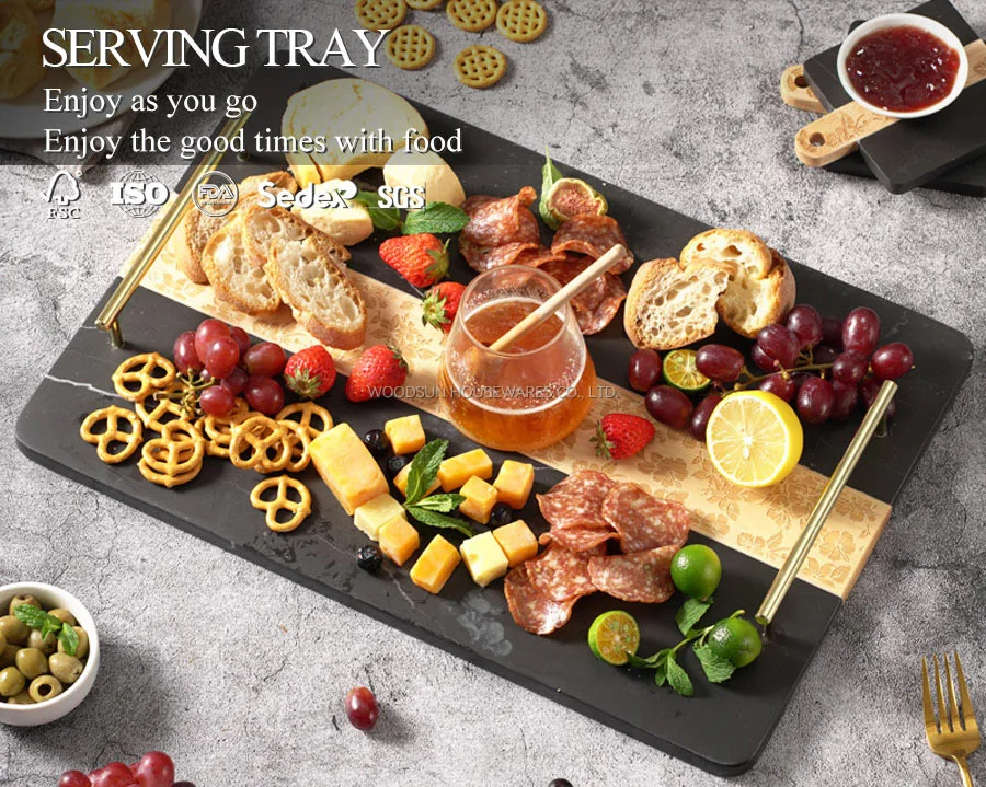 Woodsun 2025 Gift Rubber Wood Black Marble Wooden Food Serving Tray