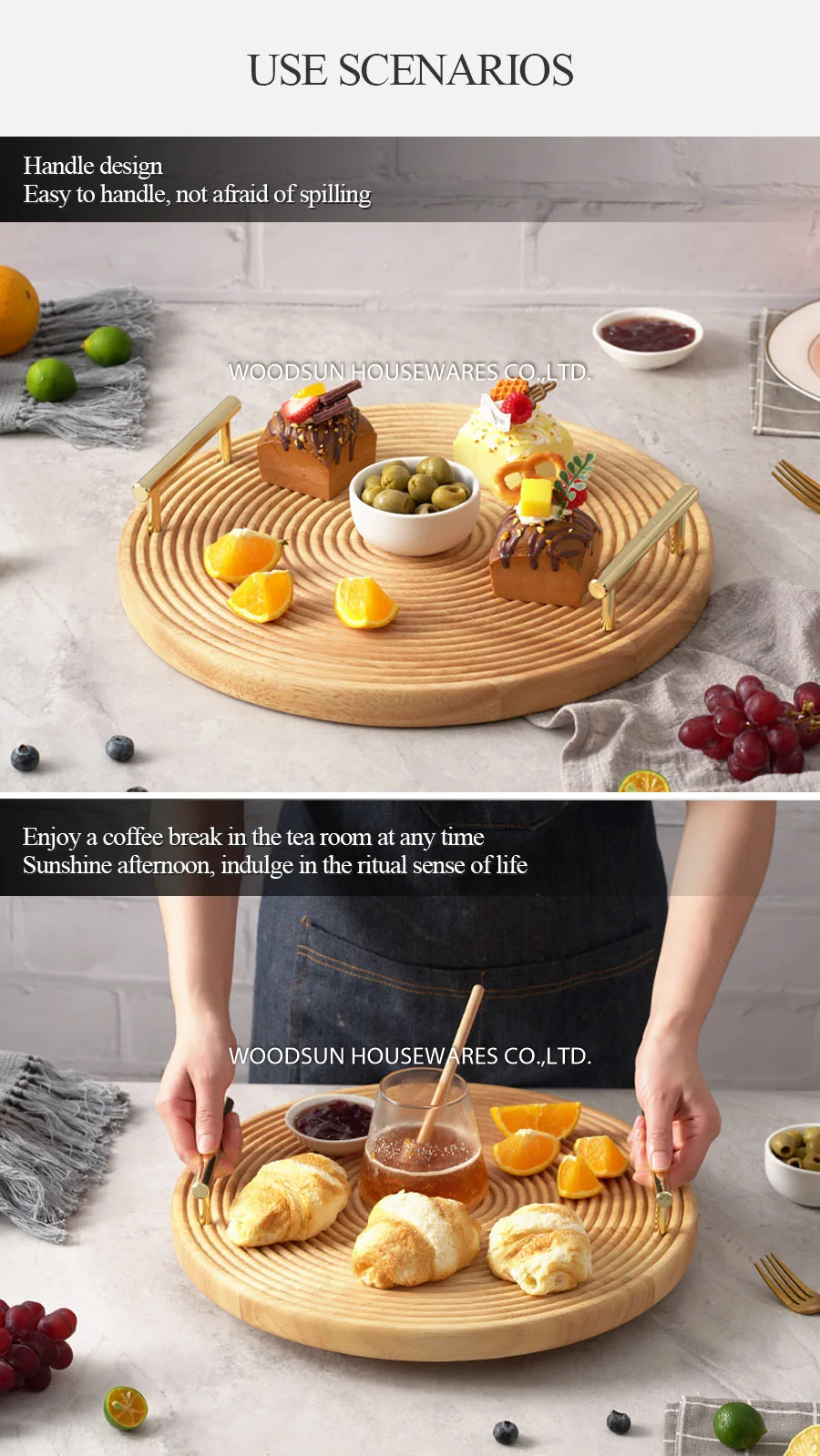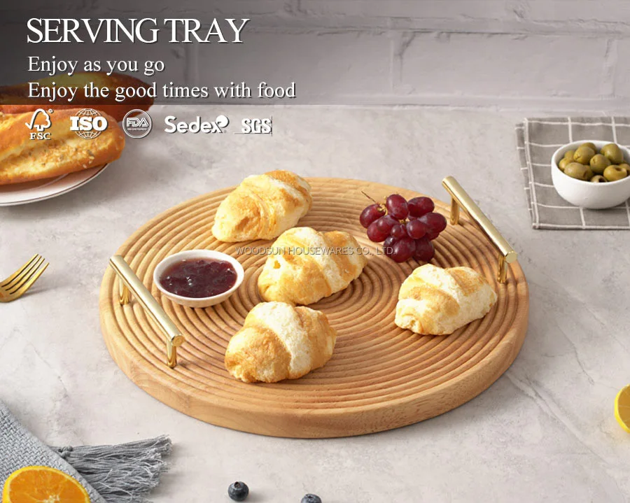 Woodsun 2025 Gift Rubber Wood Dessert Modern Round Serving Trays