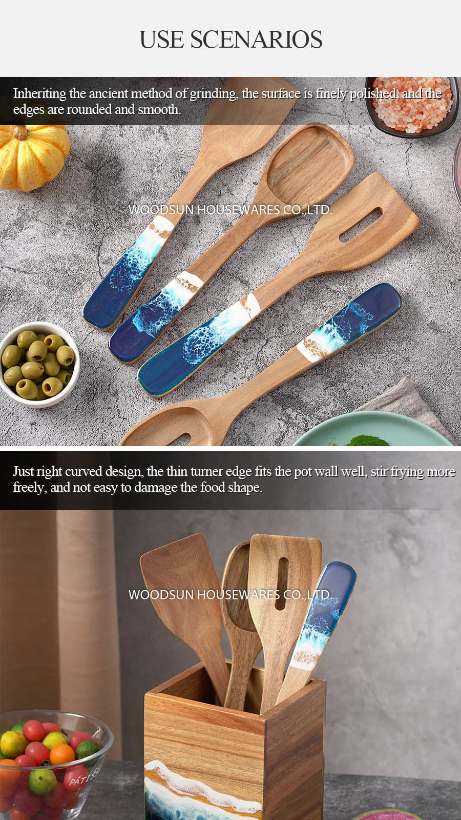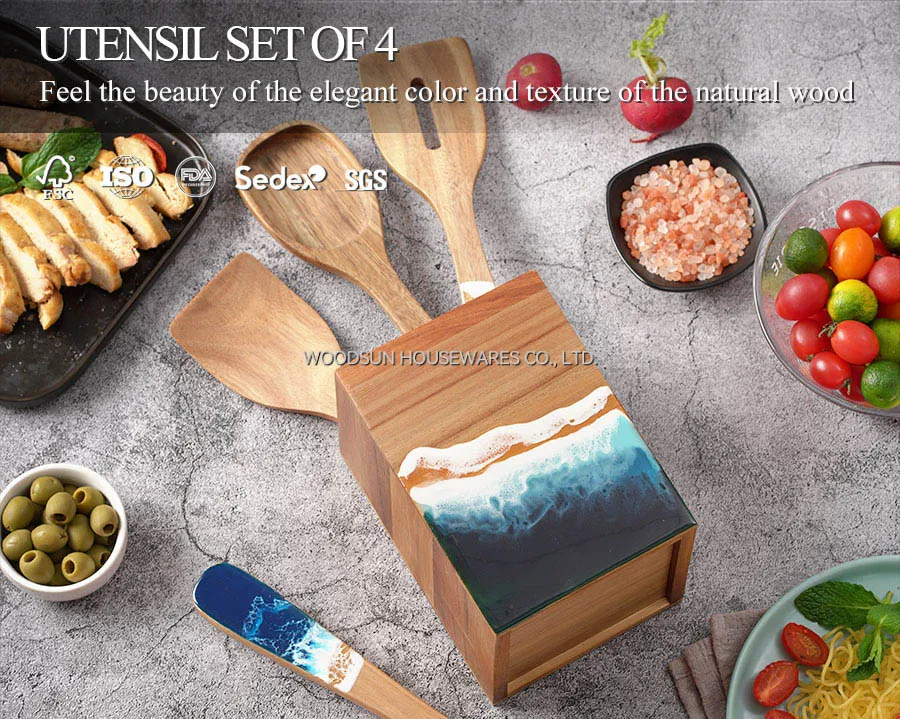 Woodsun 2025 Sea Wave Design Kitchen Wooden Spoon Cutlery Organizer Utensil Holder