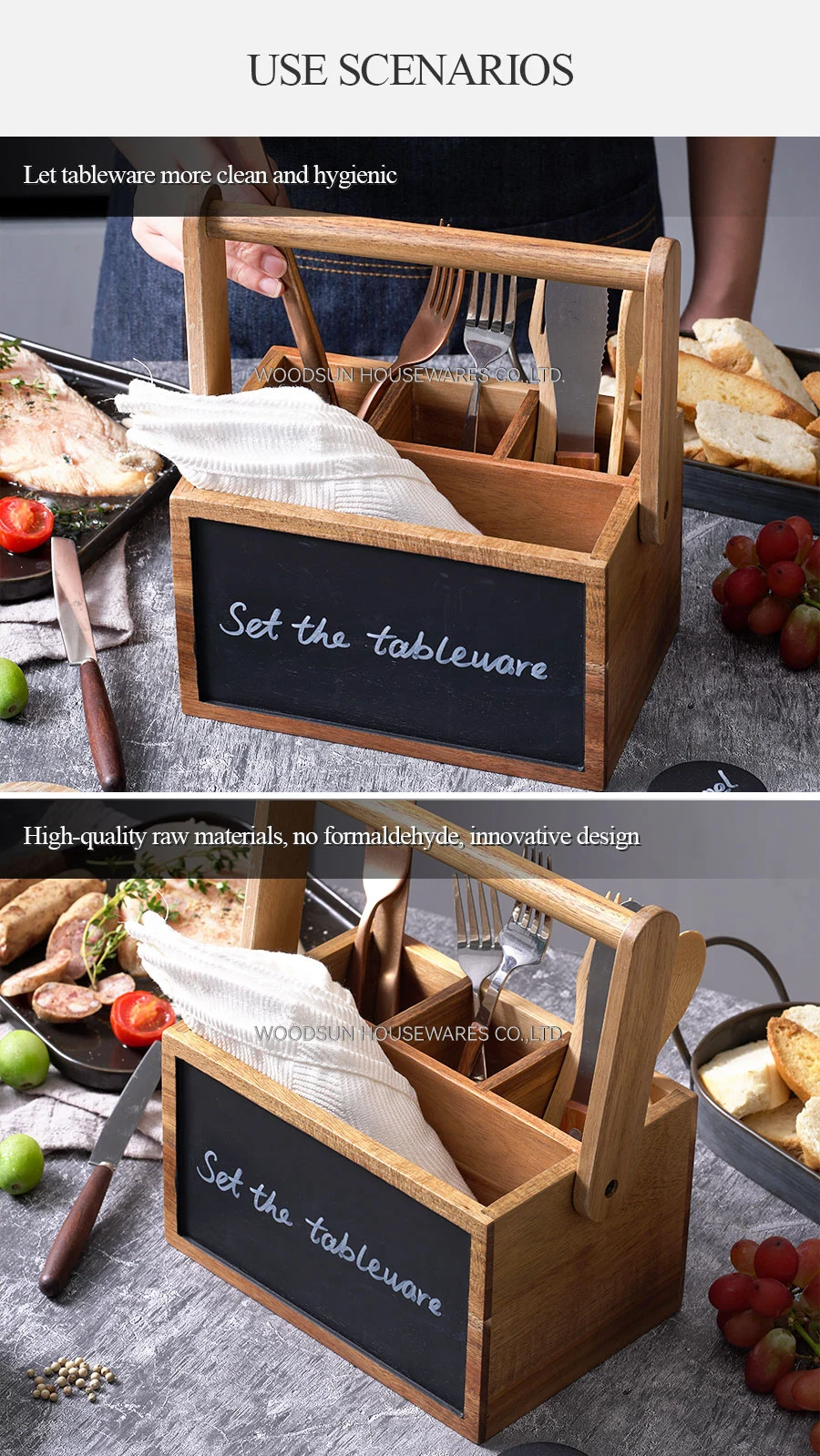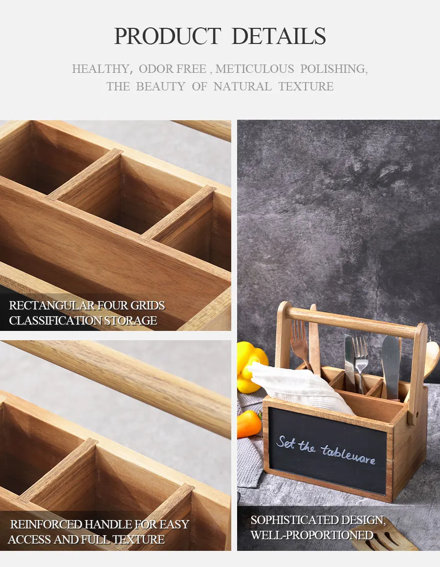 Woodsun 2026 Acacia Wood Cutlery Organizer Storage Box Kitchen Utensils for Cooking Tools