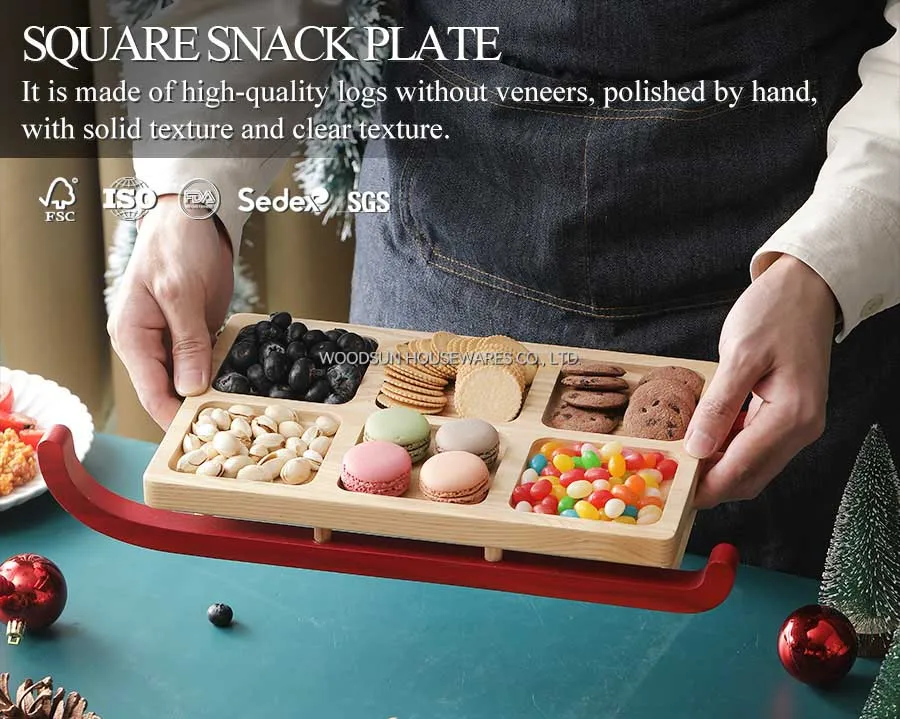 Woodsun 2026 Ash Rubber Christmas Sleigh Cake Stand Snack Plate