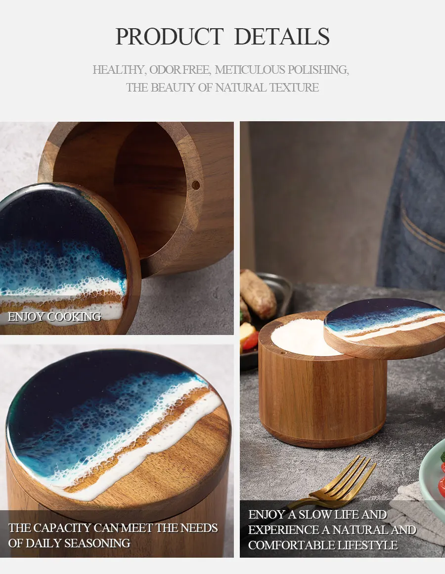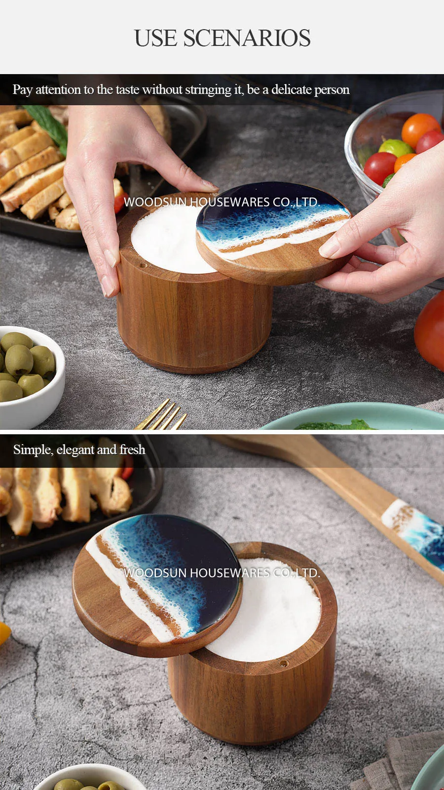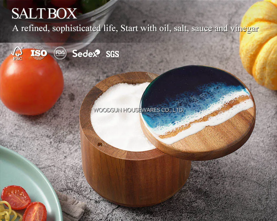 Woodsun Acacia Magnet Resin Wood Salt Box Manufacturer