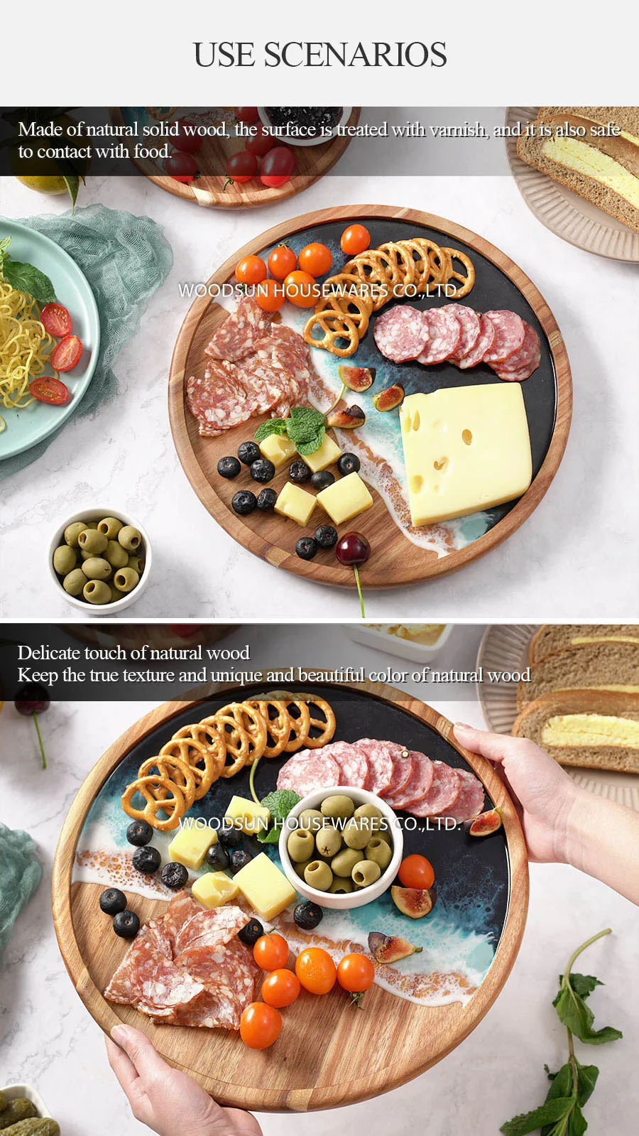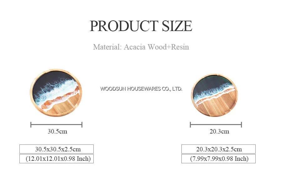 Woodsun Acacia Sea Wave Resin Acacia Wood Plates for Food