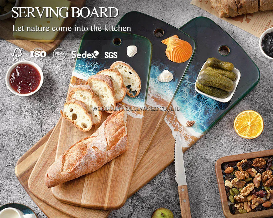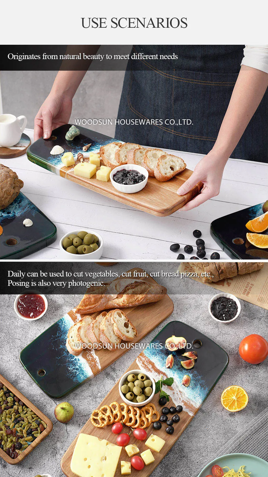 Woodsun Acacia Sea Wave Resin Custom Party Serving Tray Restaurant Food