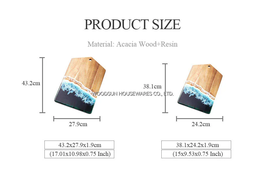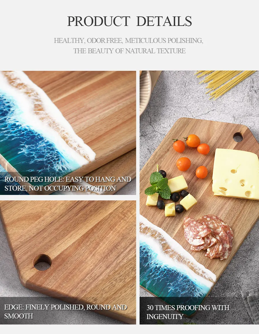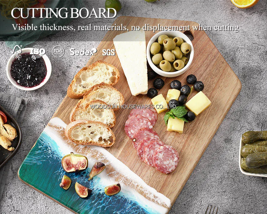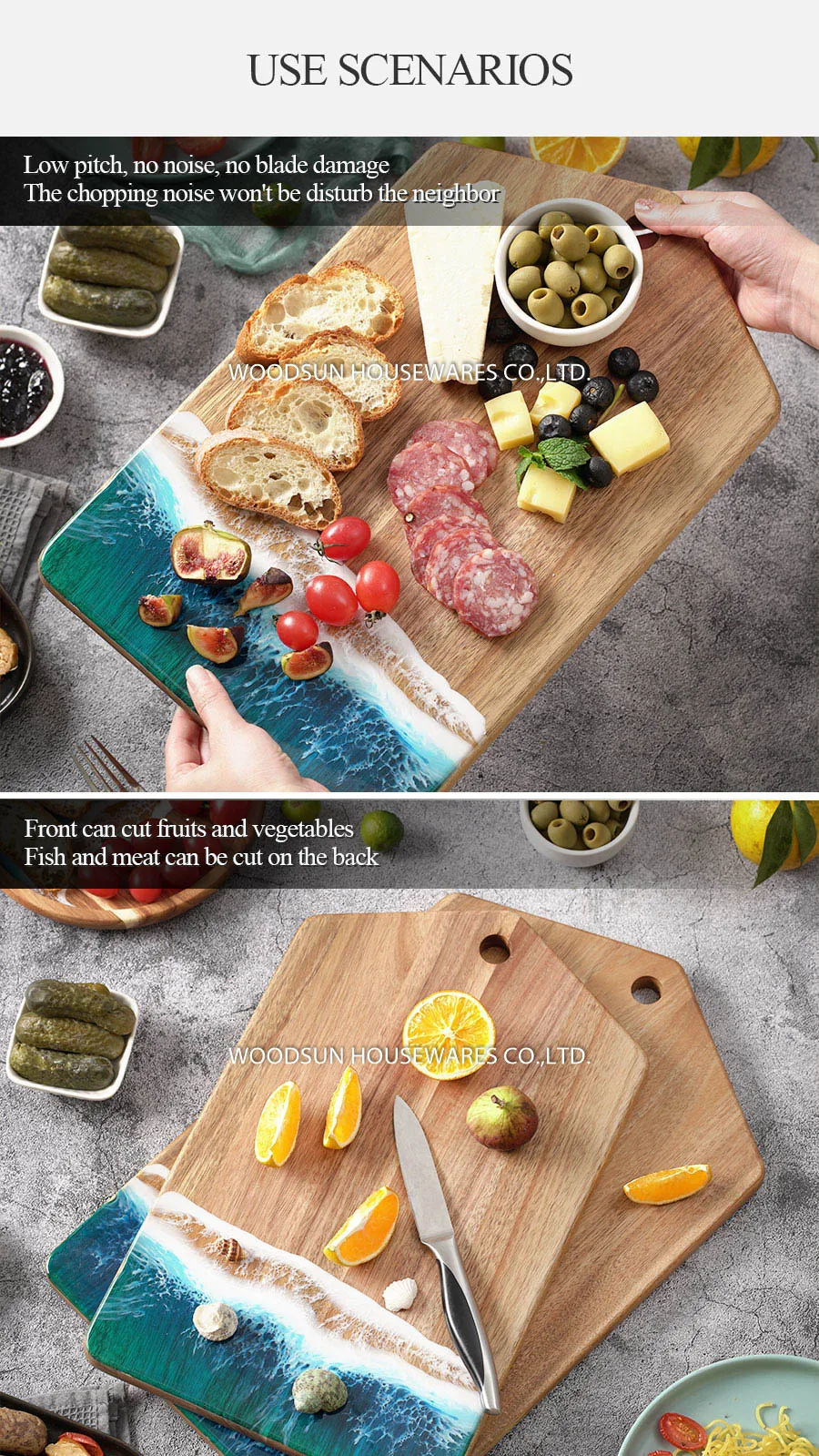 Woodsun Acacia Sea Wave Resin Wooden Cutting Board Serving Board for Party