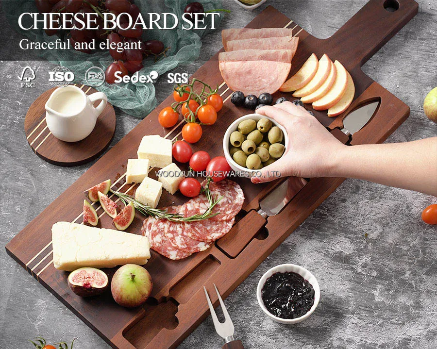 Woodsun Acacia Wood Multi-Function Corporate Gift Cheese Board Knife Set