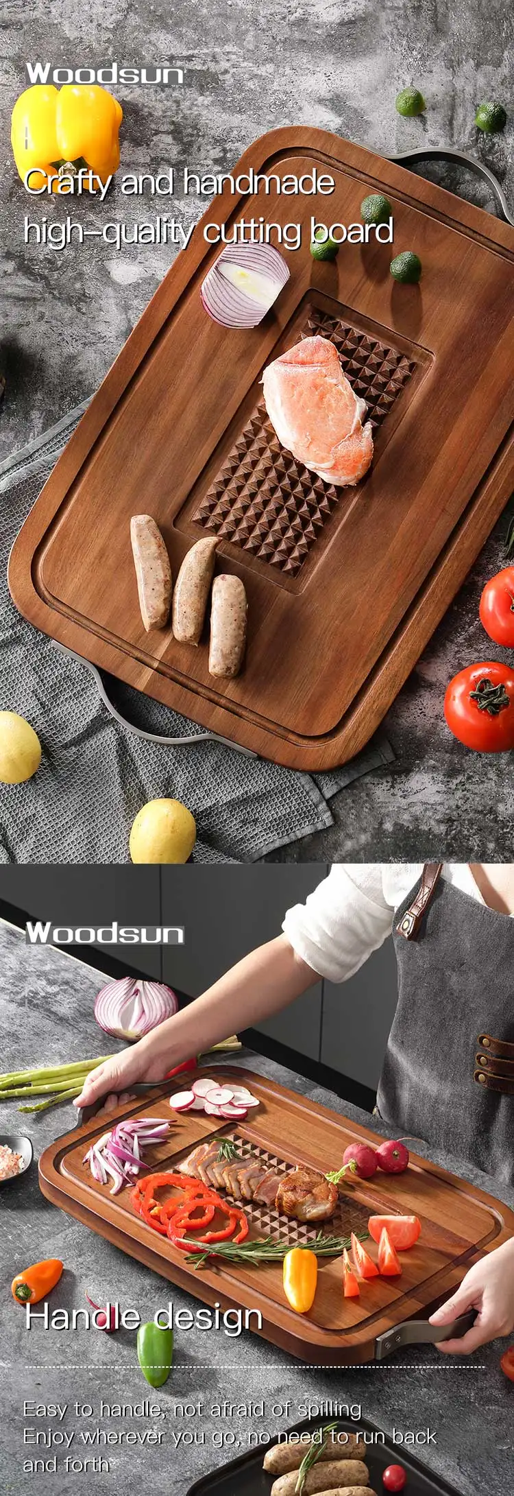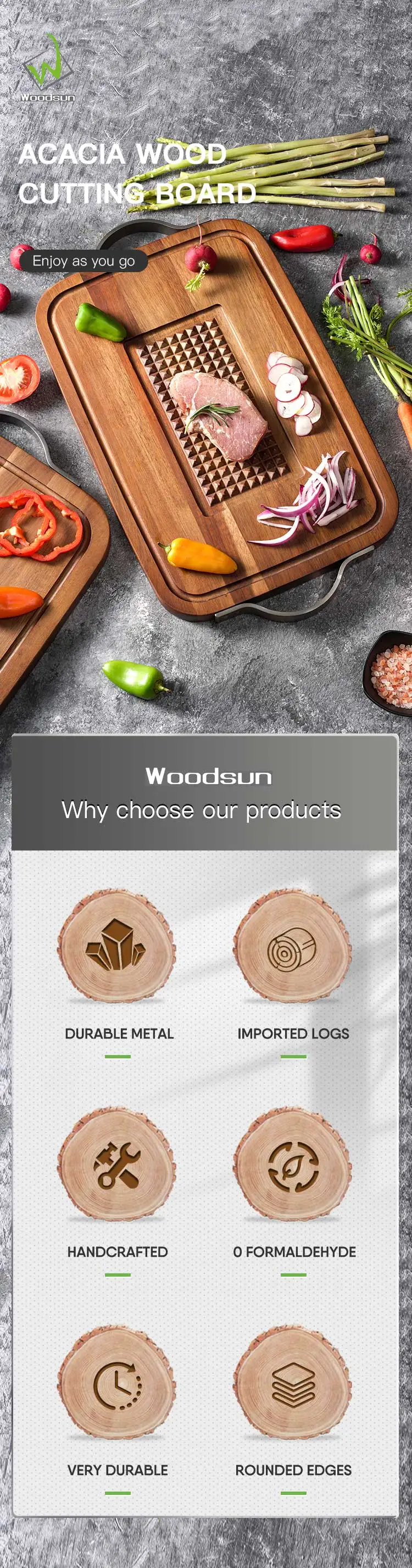 Woodsun Acacia Wood SS 430 Kitchen Handmade Wood Best Cutting Board