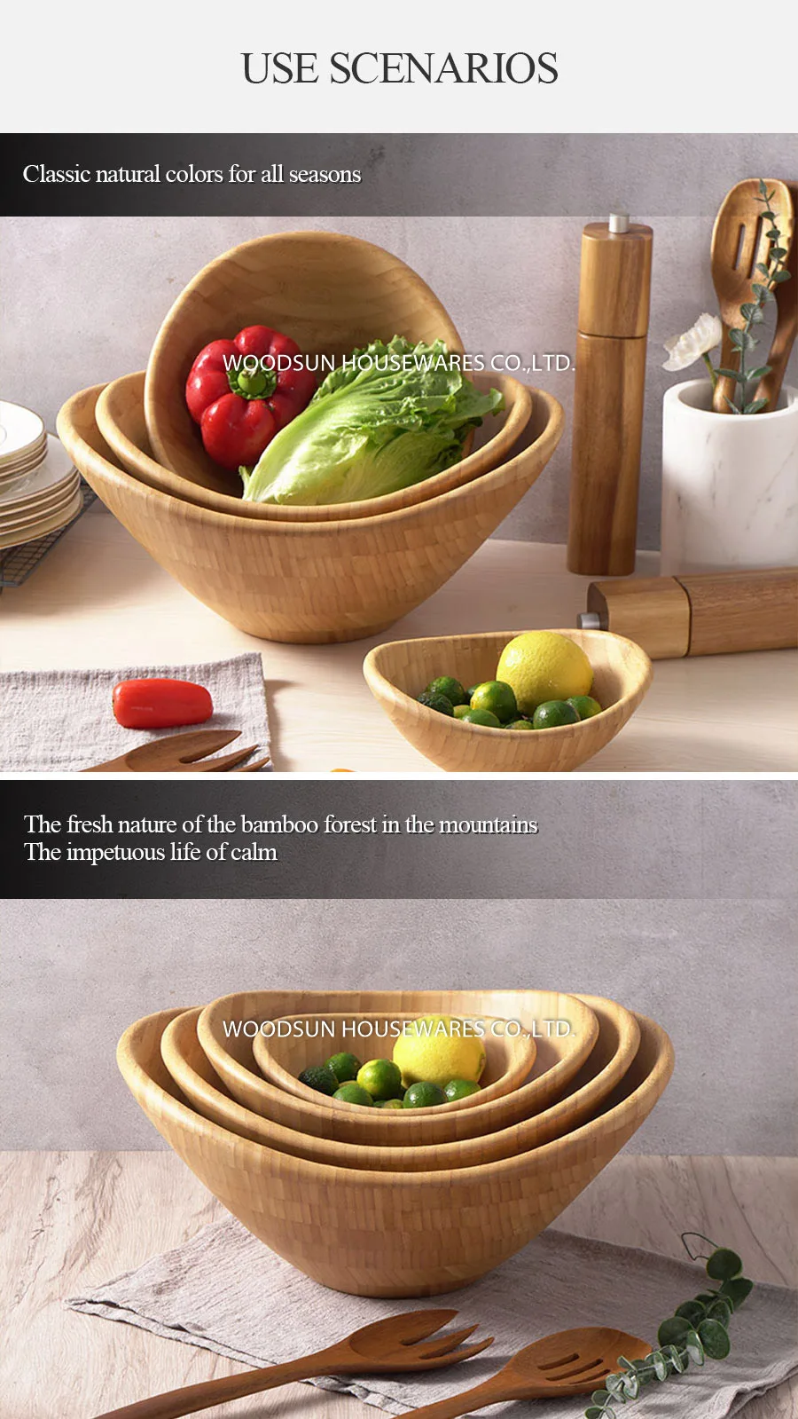 Woodsun Bamboo Salad Bowl Bamboo Fruit Food Bowl For Sale