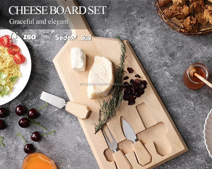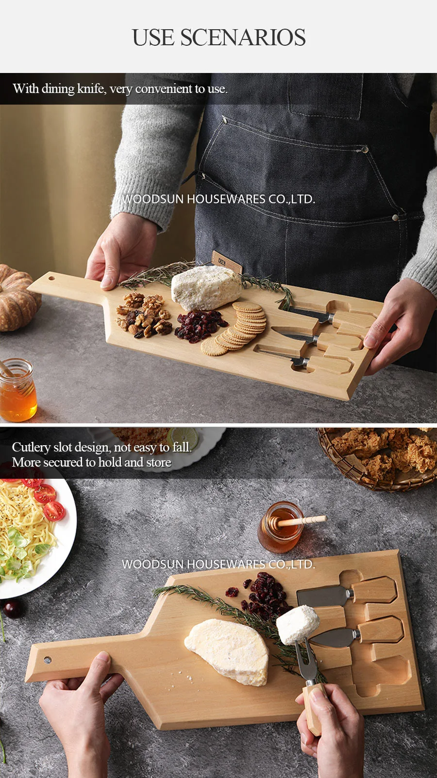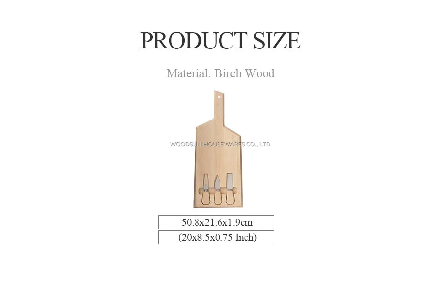 Woodsun Birch Wood S/S420J2 Tabla De Quesos Wood Cheese Board Knife Set