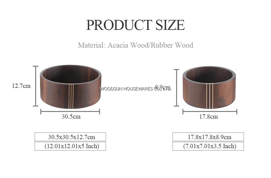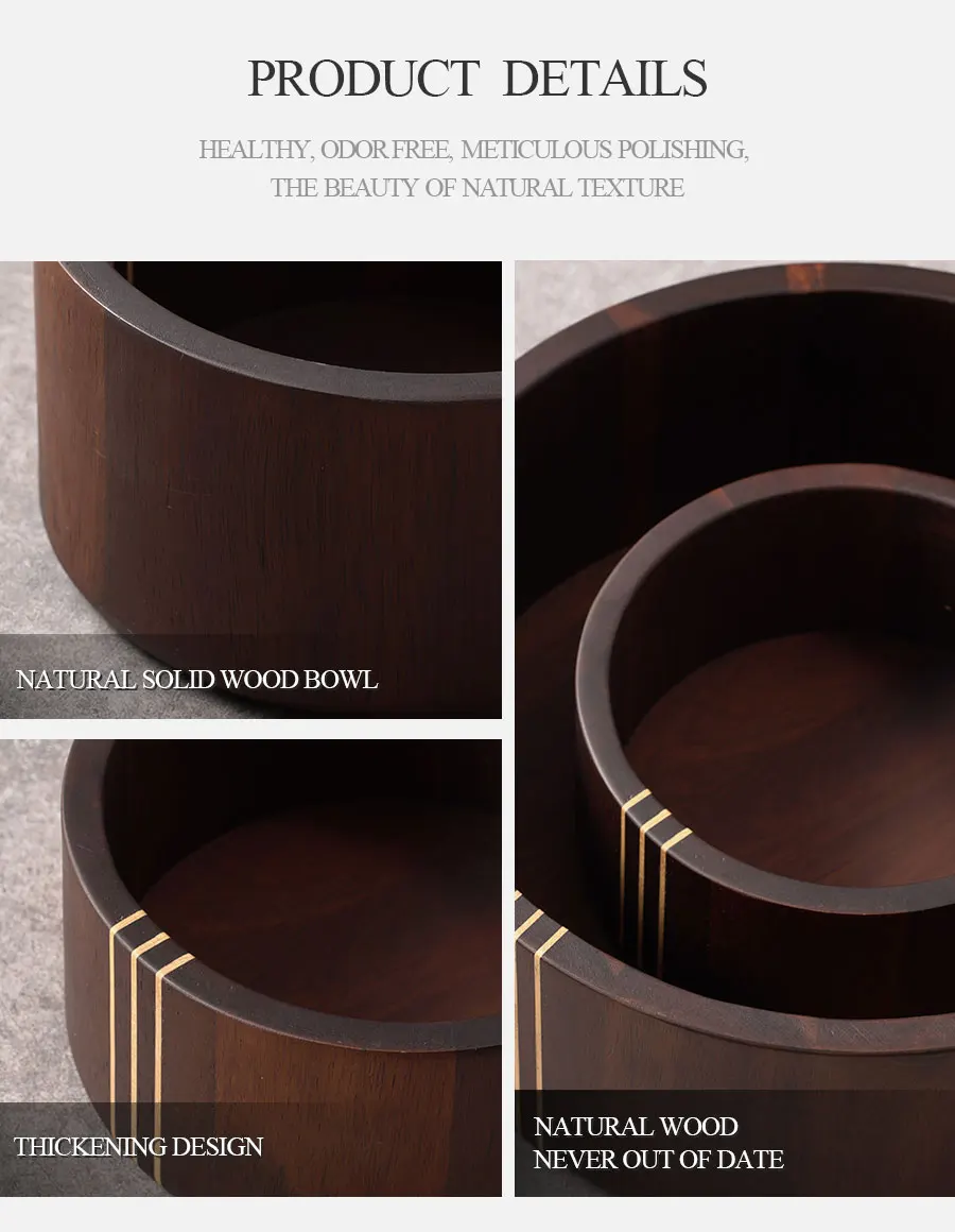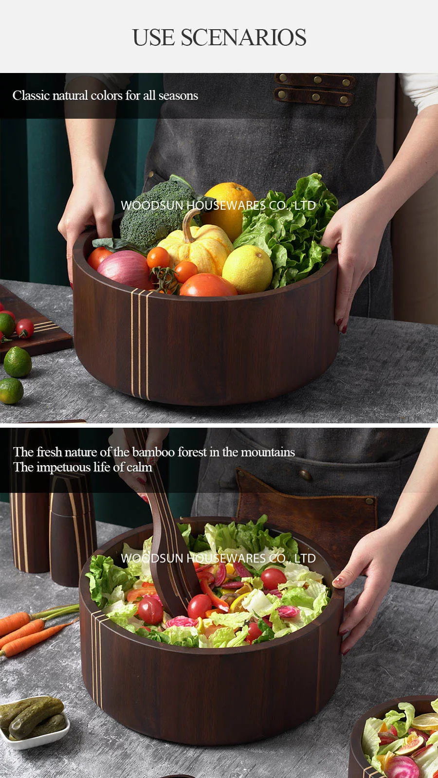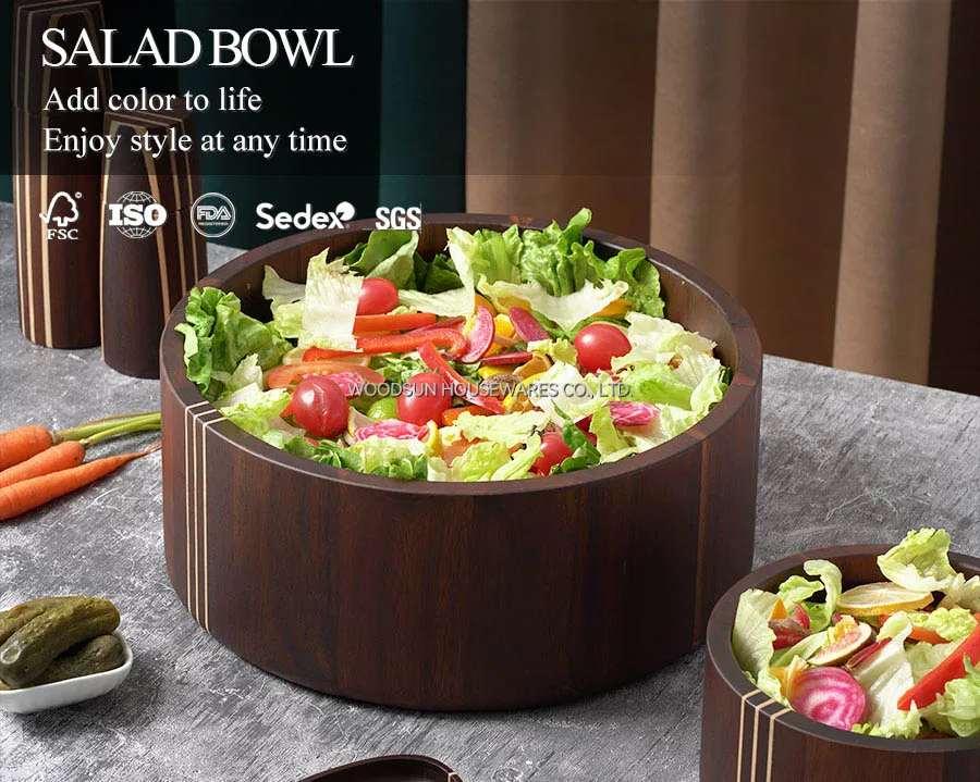 Woodsun Carbonied Acacia Wood Kitchenware Wooden Bowl of Salad