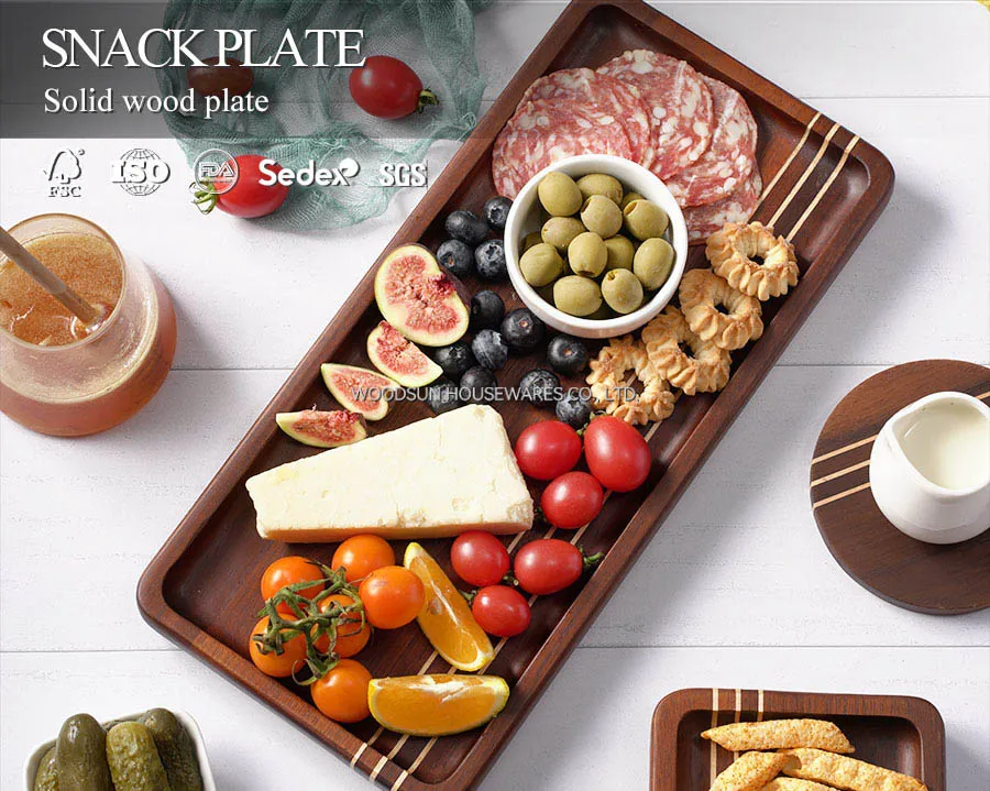 Woodsun Carbonied Acacia Wood Restaurant Natural Reusable Wood Plate Wholesale