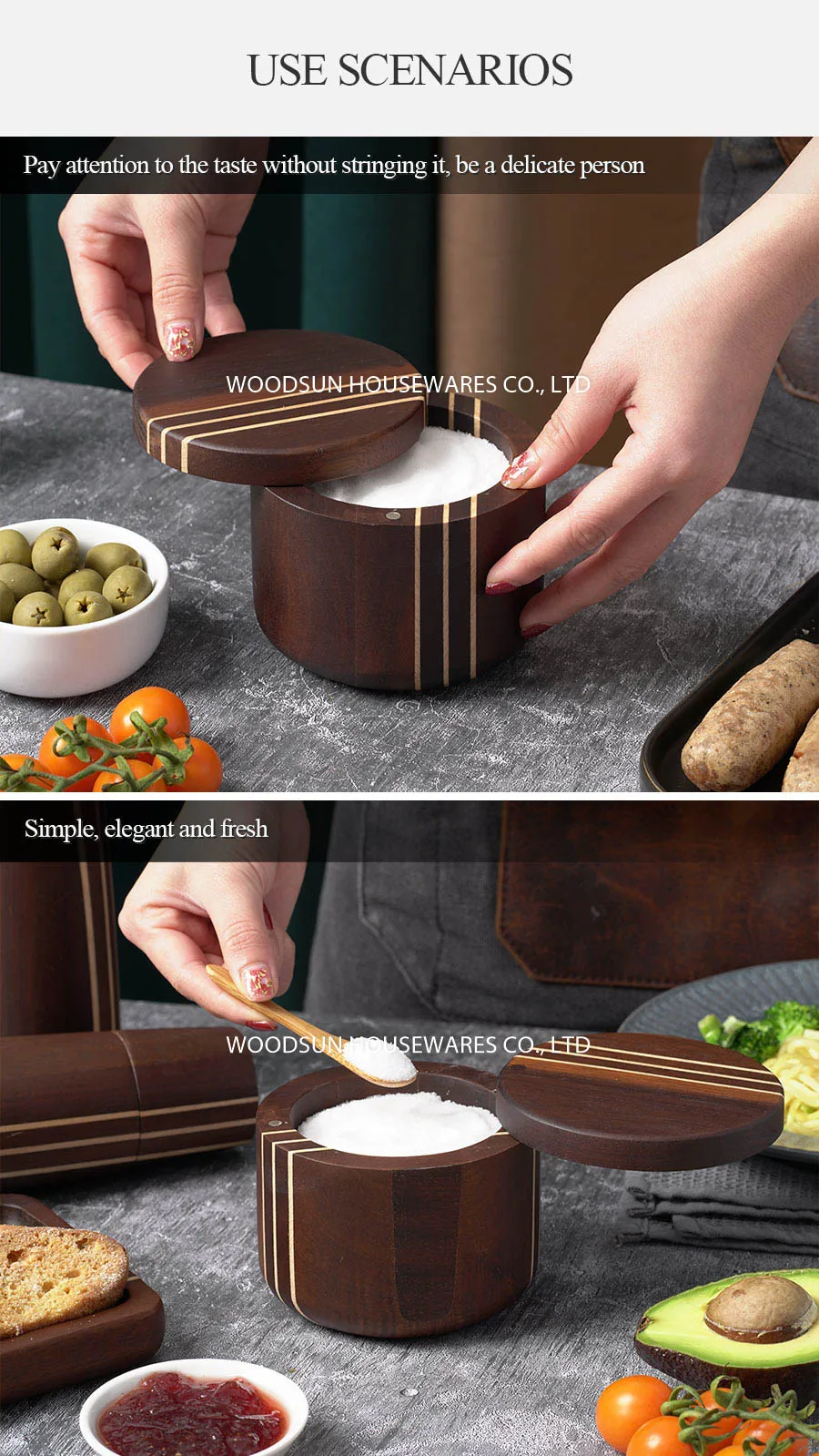 Woodsun Carbonied Acacia Wooden Salt and Pepper Spice Salt Box