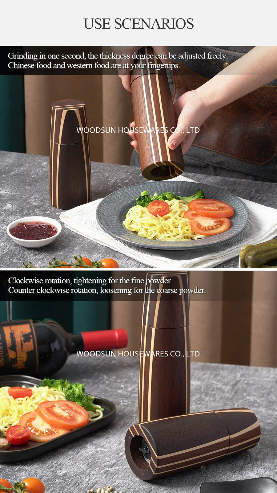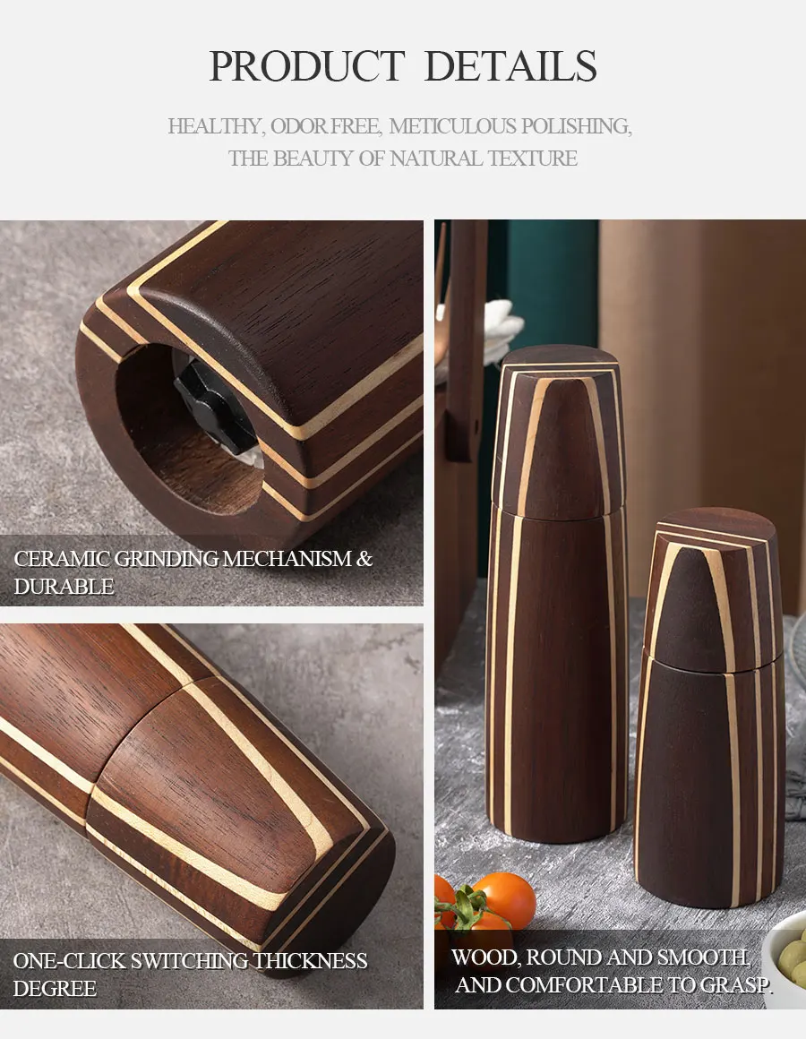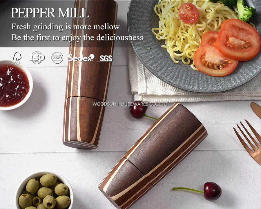 Woodsun Carbonized Acacia SS304 Ceramic Wood Salt and Pepper Mill Grinder