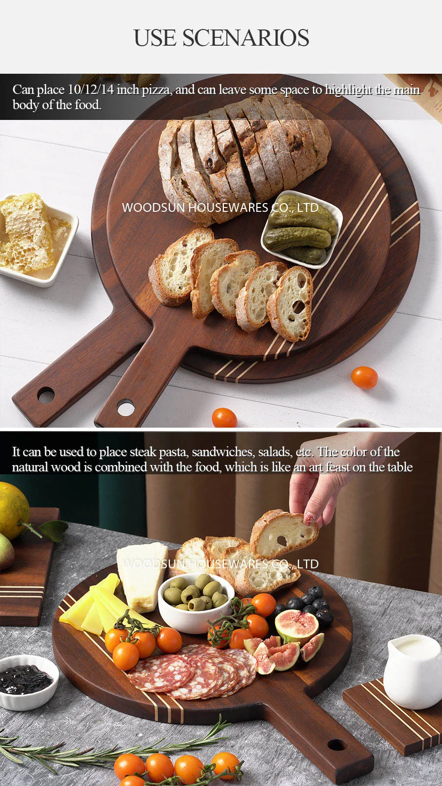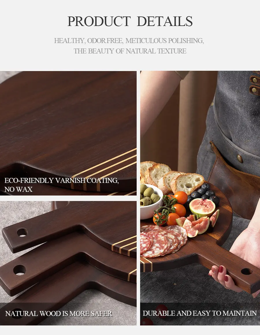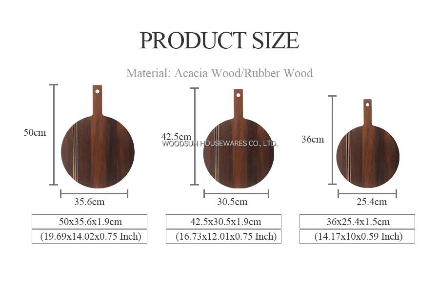 Woodsun Carbonized Acacia Wood Chopping Board Set Custom Logo With Handle Holders