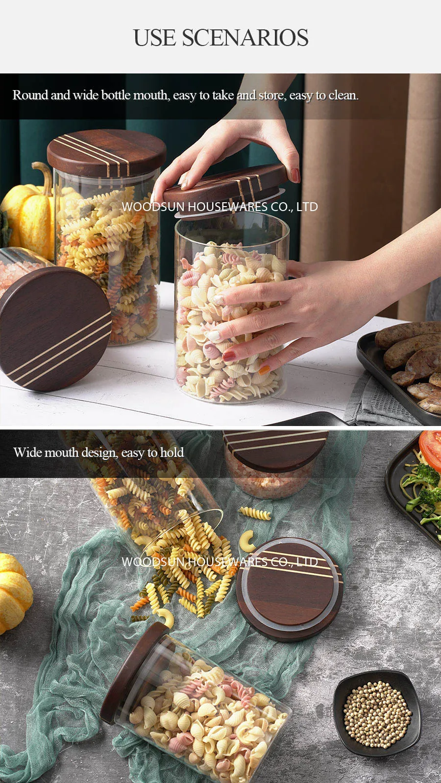 Woodsun Carbonized Acacia Wood Glass Kitchen Canisters Spice Glass Jar With Lid Tea Coffee
