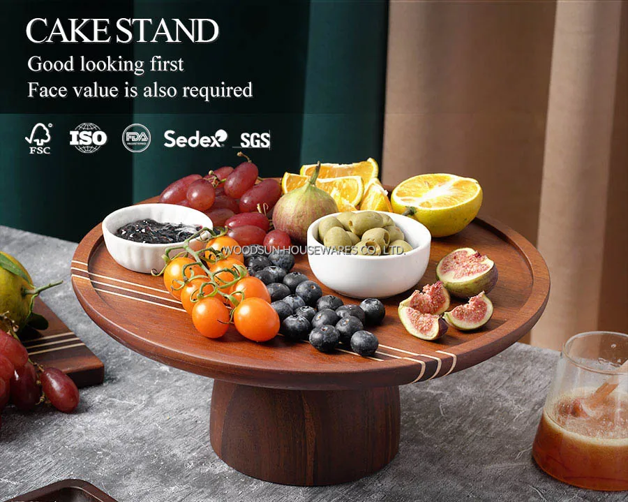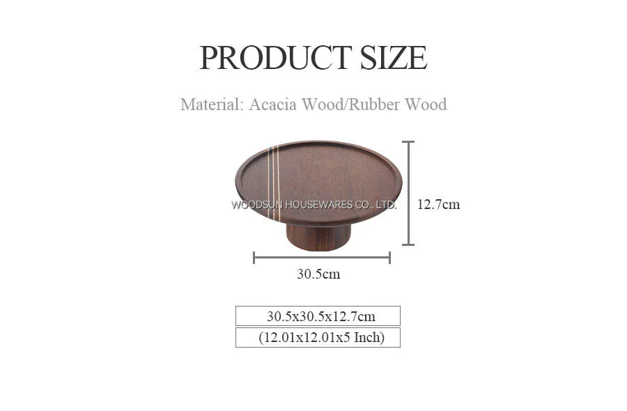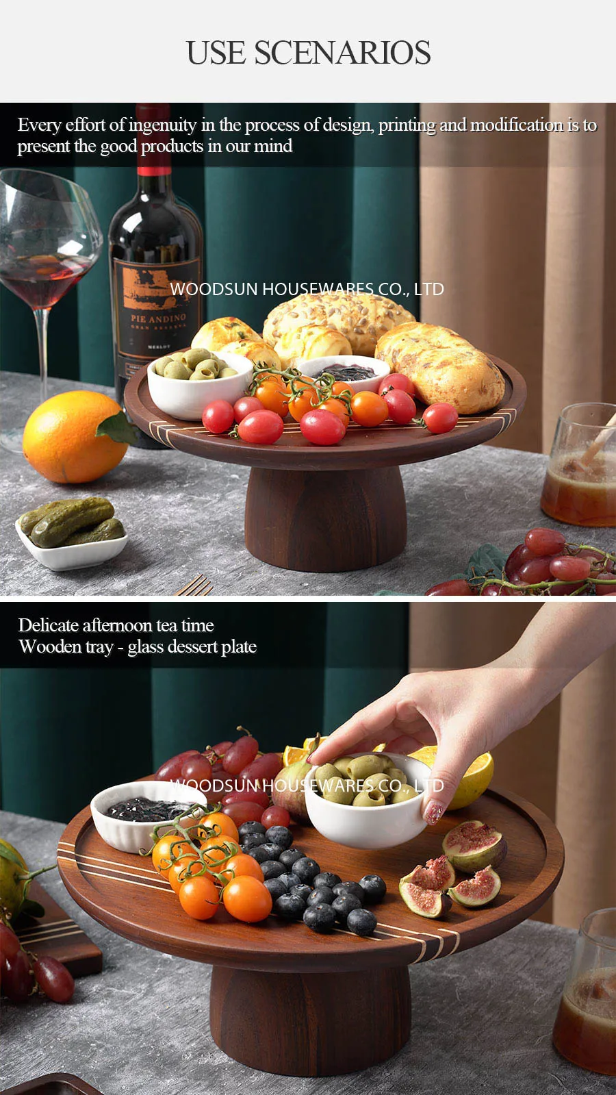 Woodsun Carbonized Acacia Wood High Step Cake Stand Wooden Plates for Food