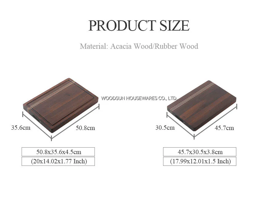 Woodsun Carbonized Acacia Wood Kitchen Chopping Board Acacia Set