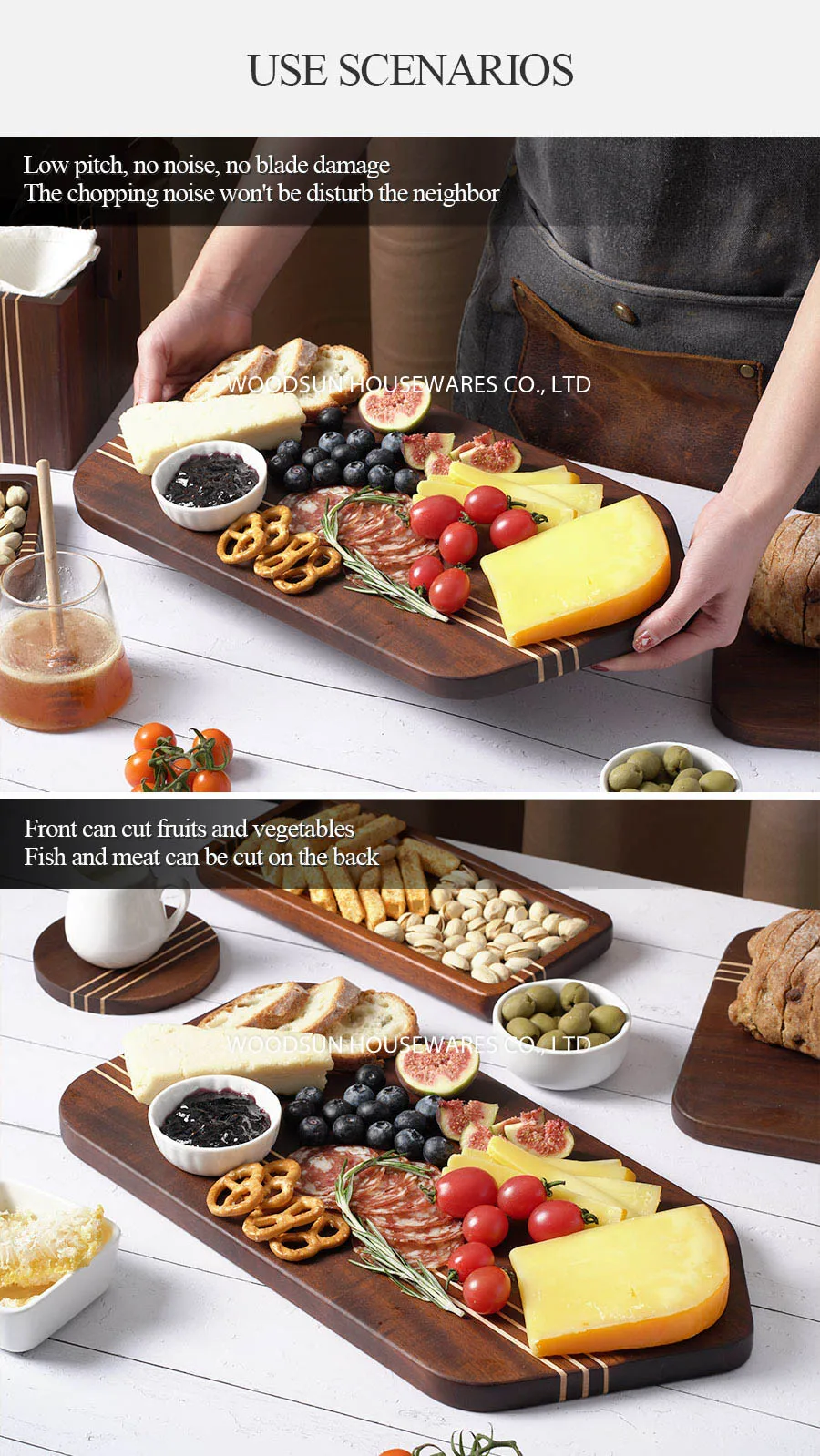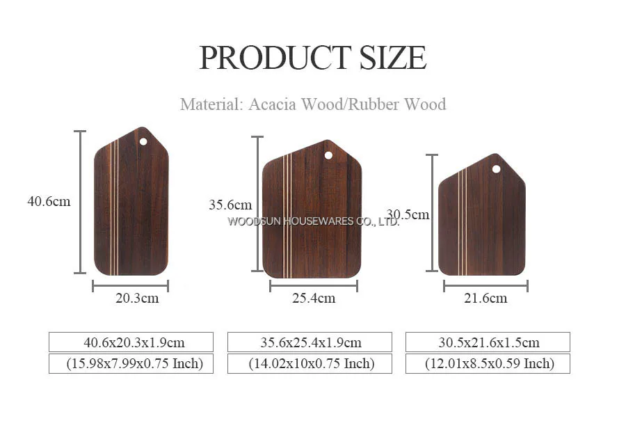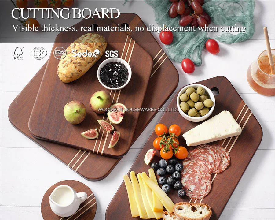 Woodsun Carbonized Acacia Wood Kitchen Cutting Board Acacia Set Serving Board