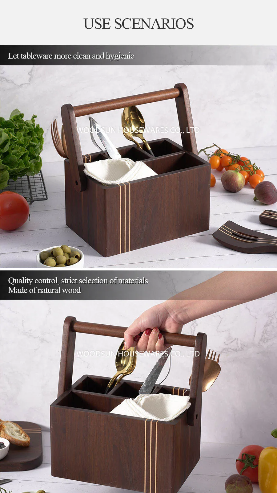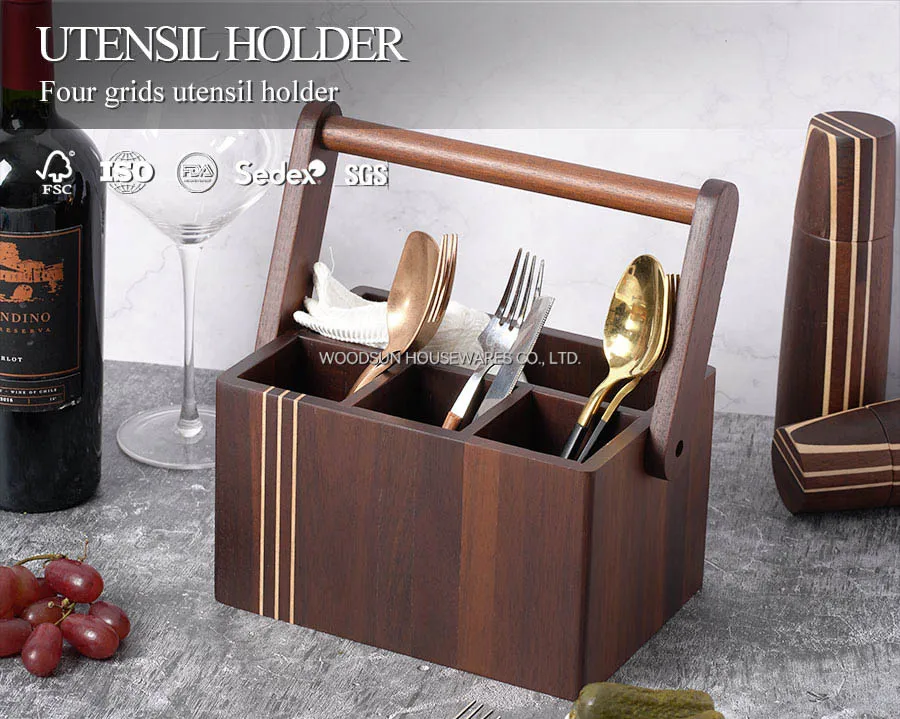 Woodsun Carbonized Acacia Wood MPD Caddy Holder Kitchen Basket Wooden Handle