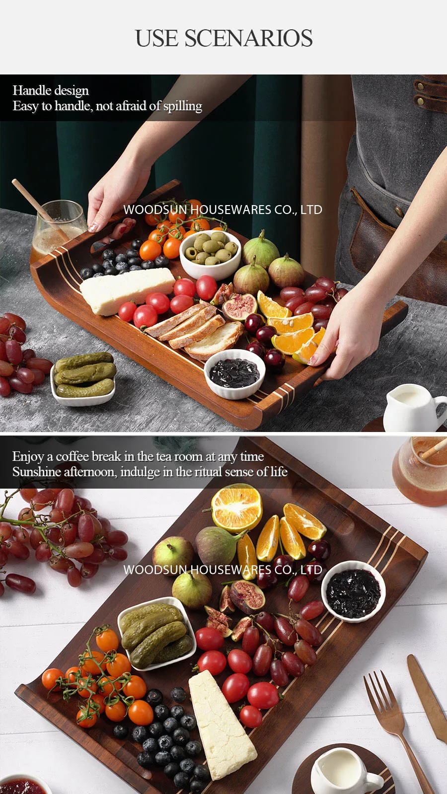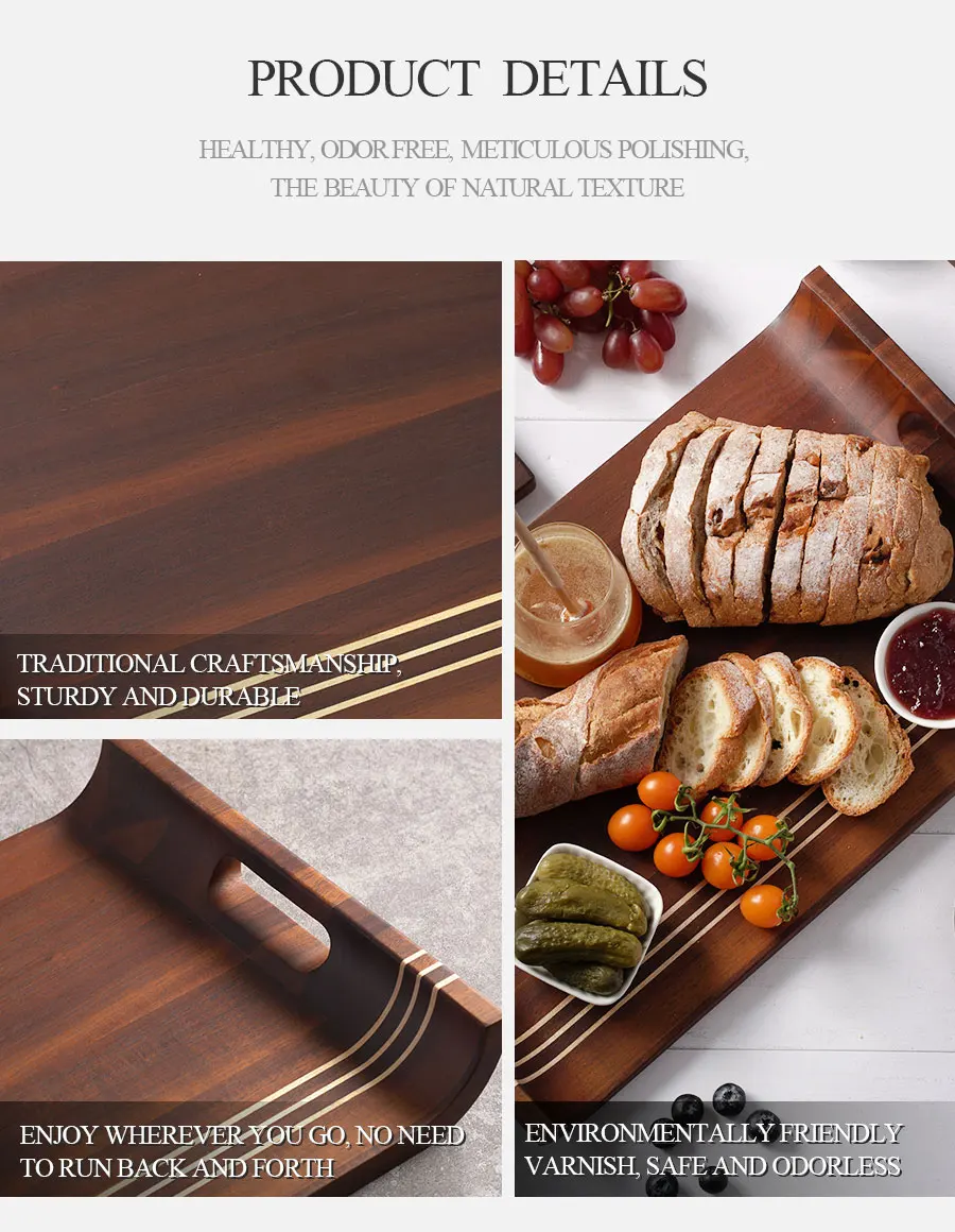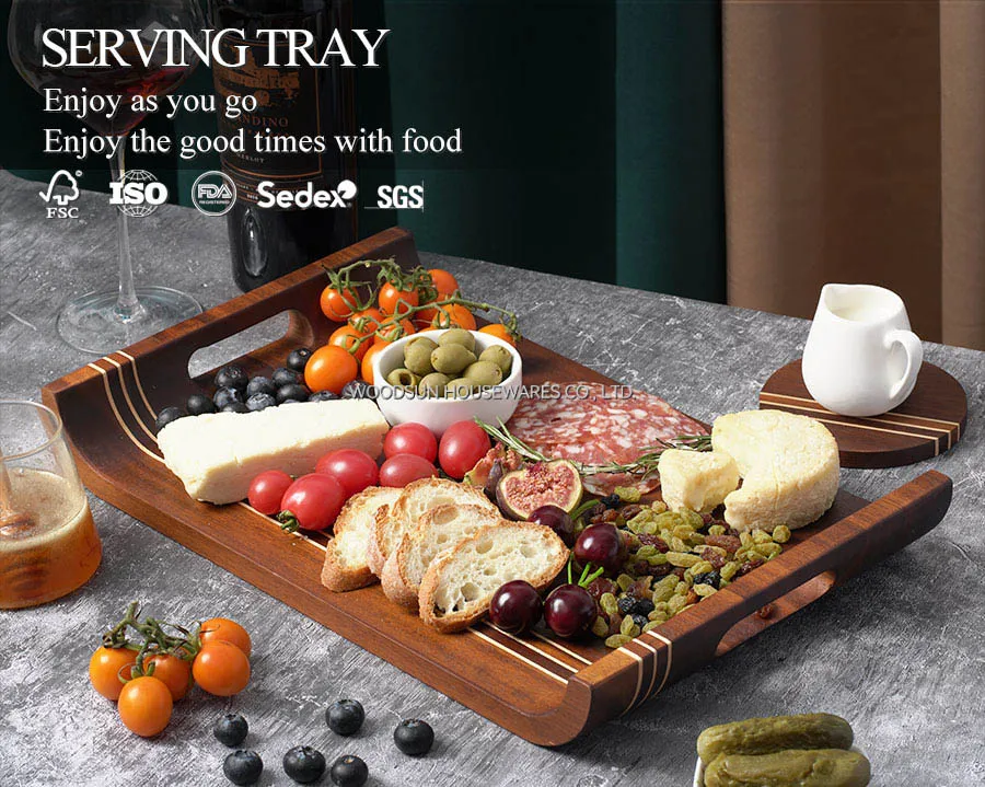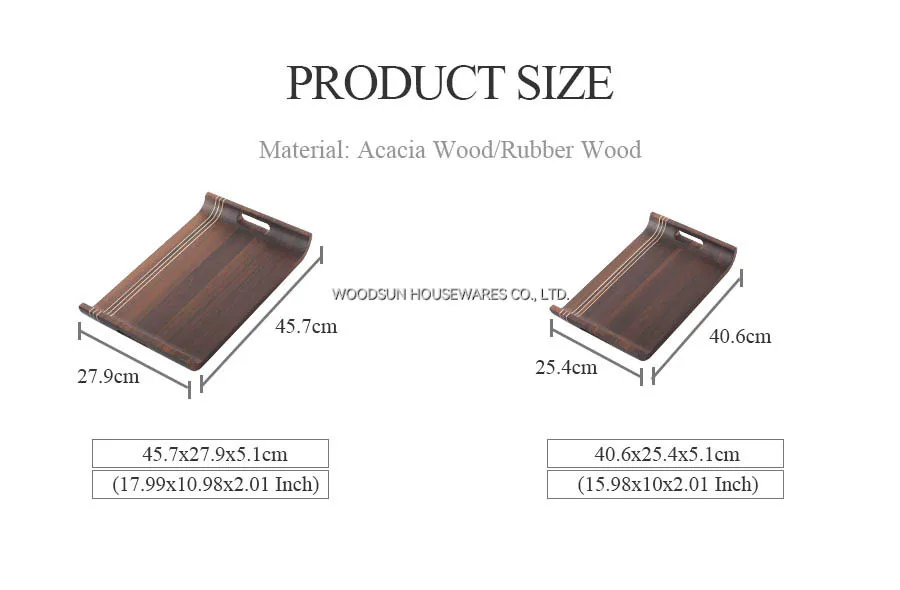 Woodsun Carbonized Acacia Wooden Food Serving Trays Set for Restaurant