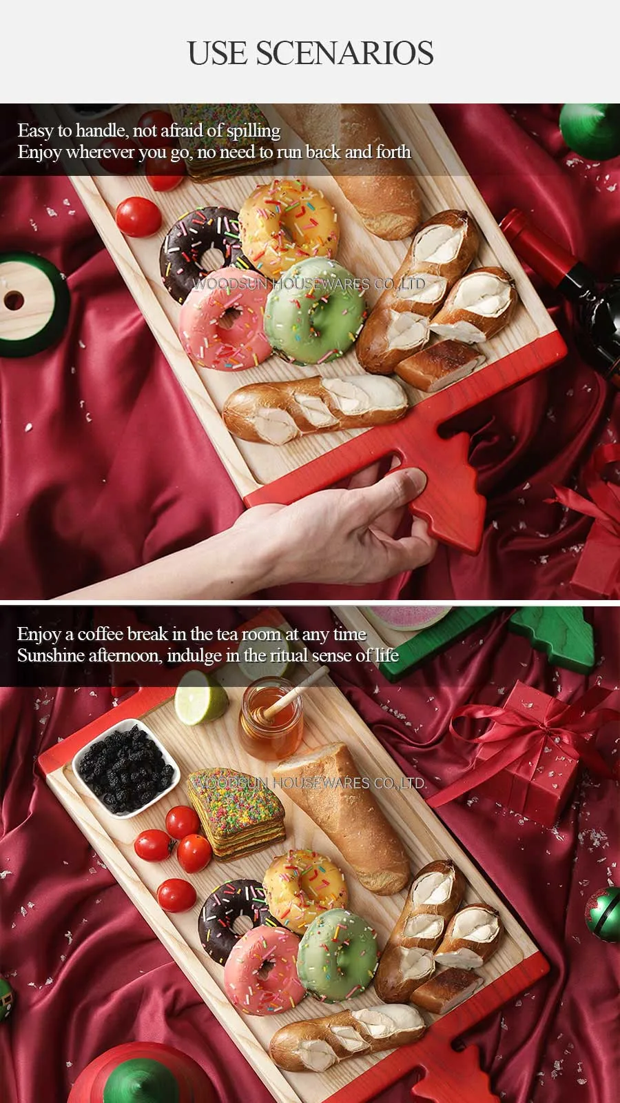 Woodsun Christmas Modern Board Serving Trays Plates for Restaurant