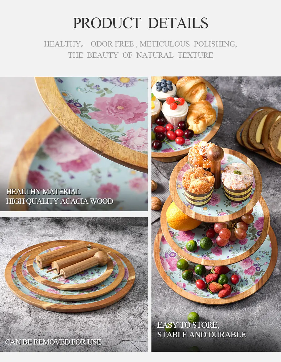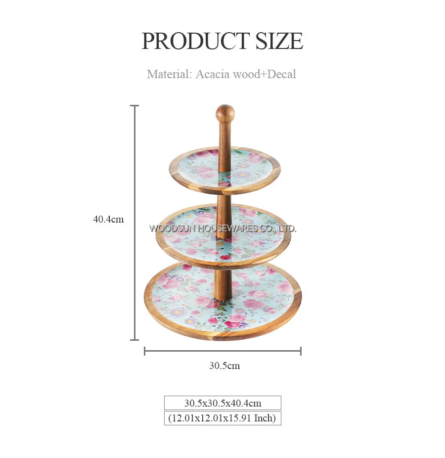 Woodsun Custom 3 Tiers Chip and Dip Acacia Wood Plates for Cake Snacks