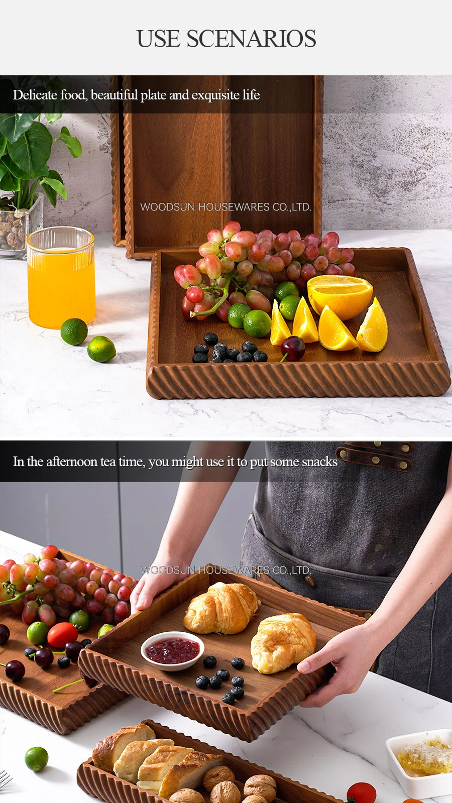 WoodSun Custom Food Dessert Trays Serving Trays For Restaurant