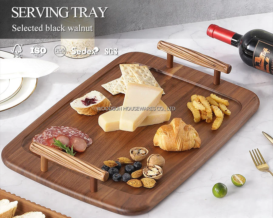 Woodsun Custom Fruit Food Wood Board Serving Tray With Handle