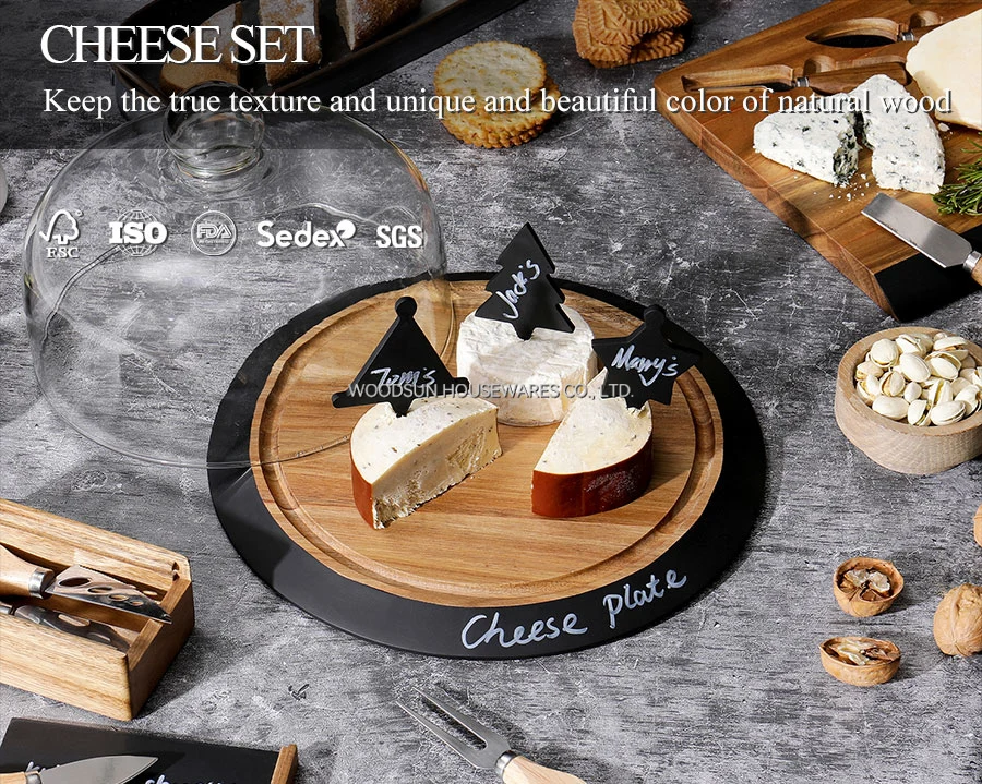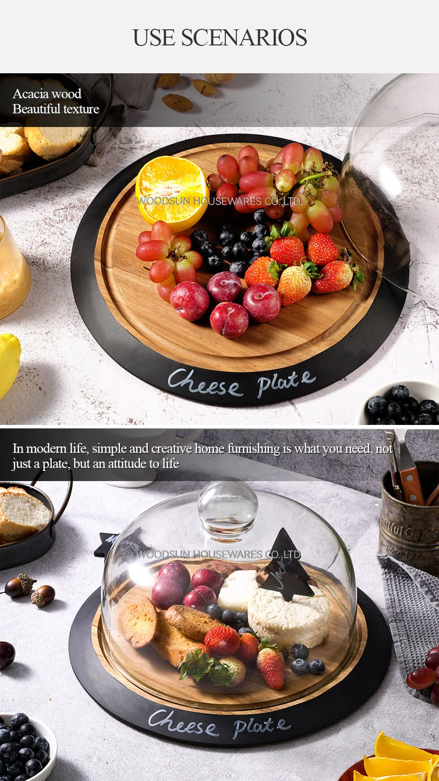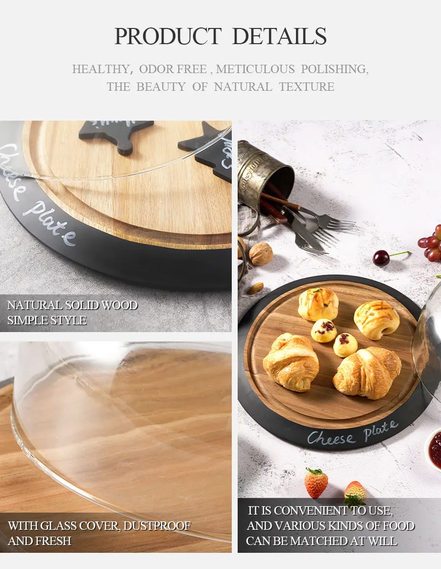 Woodsun Custom Glass Lid Wooden Party Cake Food Dish Plates