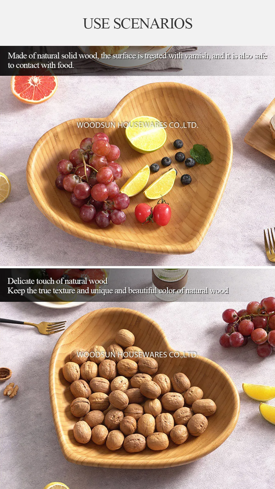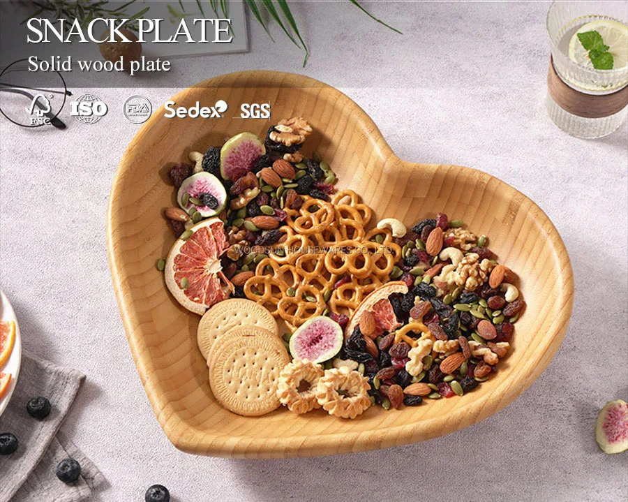Woodsun Custom Heart Shaped Eco Friendly Wholesale Organic Bamboo Plates