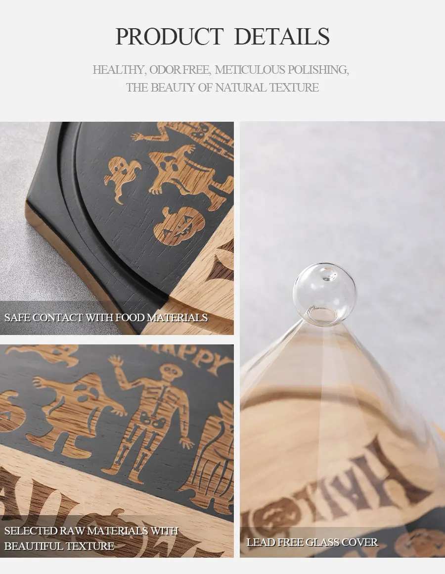 Woodsun Custom-made Wholesale Rubber Wooden Cheese Board and Knife Set with Glass Dome Cover