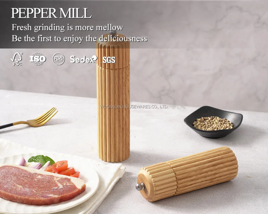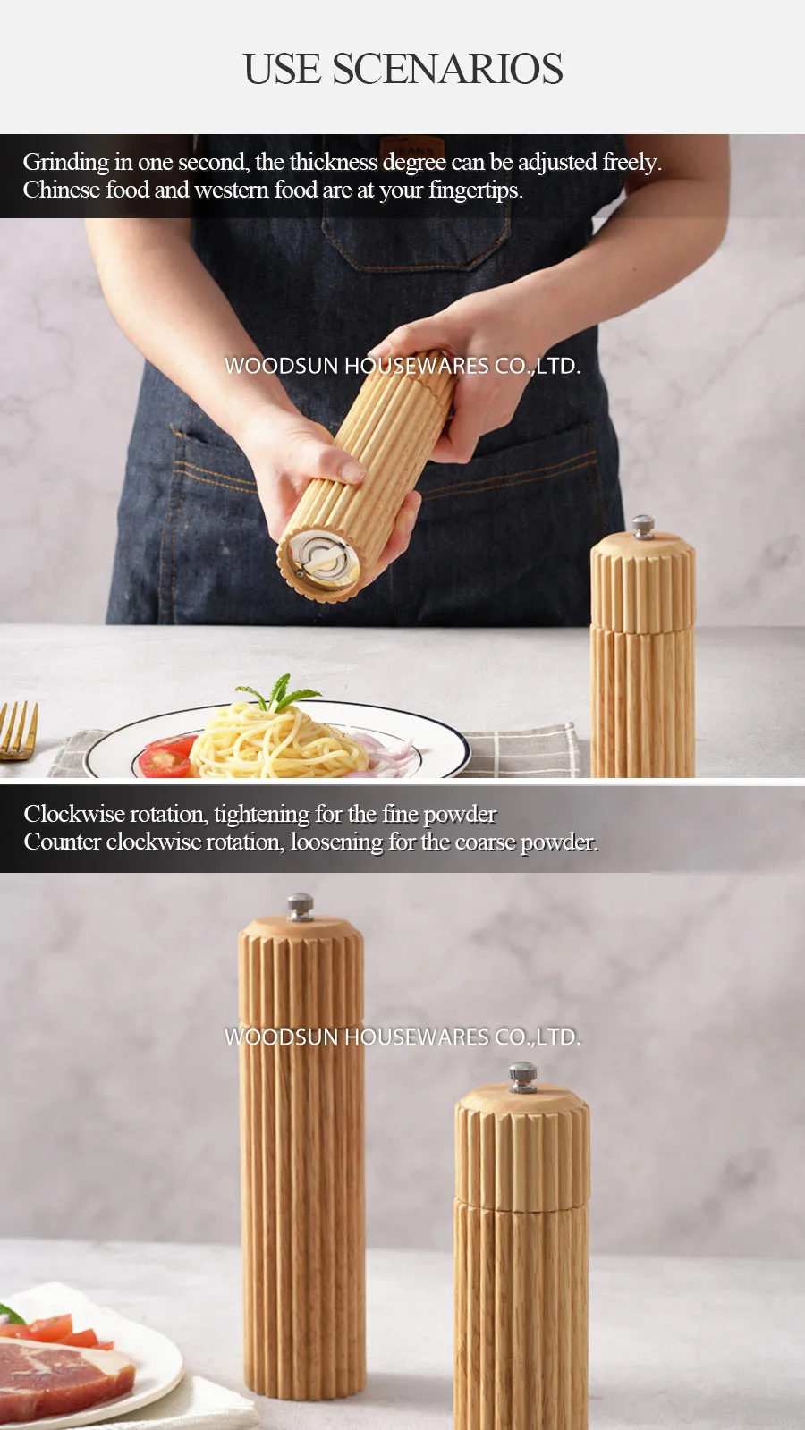 Woodsun Custom Manufacturer 2025 New Rubber Wood Grinder Pepper Salt Mill