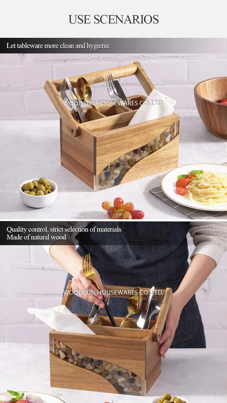 Woodsun Custom Manufacturer Basket With Handles Flower Basket Fruit Basket Utensil Caddy 2025