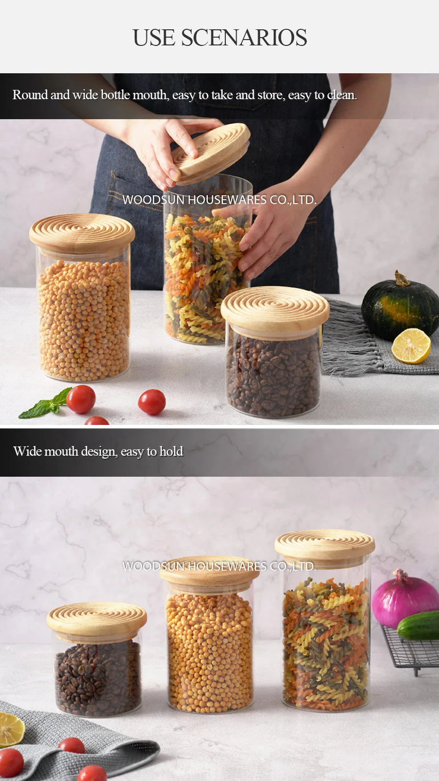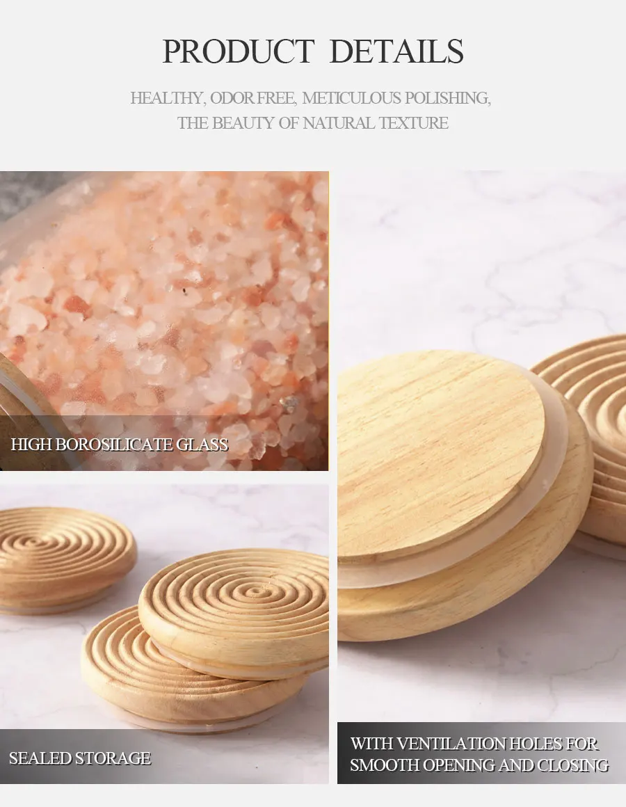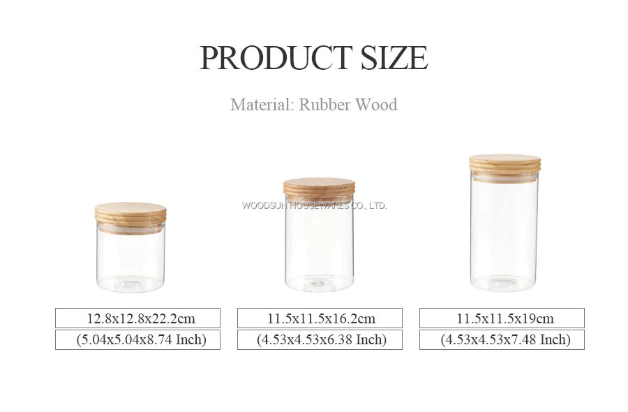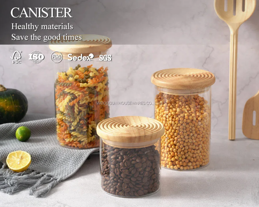 Woodsun Custom Manufacturer Food Storage Container Jar Glass Canister with Wooden Lid