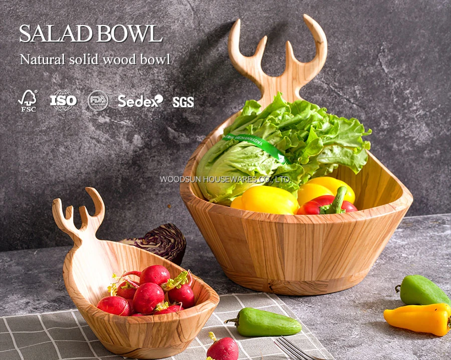 Woodsun Custom Manufacturer Olive Wooden Mixing Large Salad Bowls For Sale