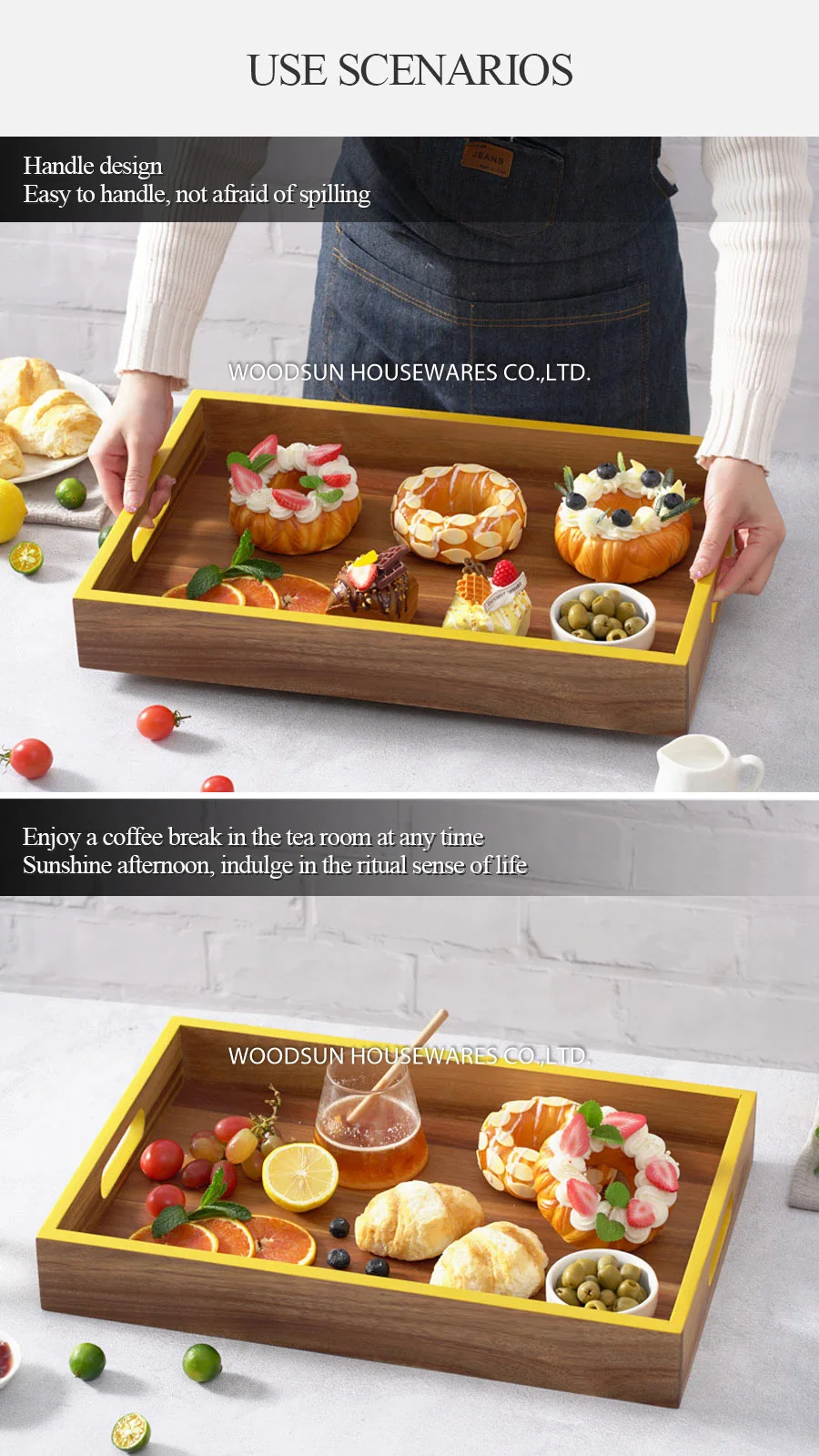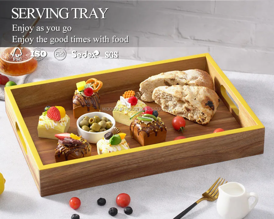 Woodsun Custom Manufacturer Wooden Desert Wood Serving Tray With Handles