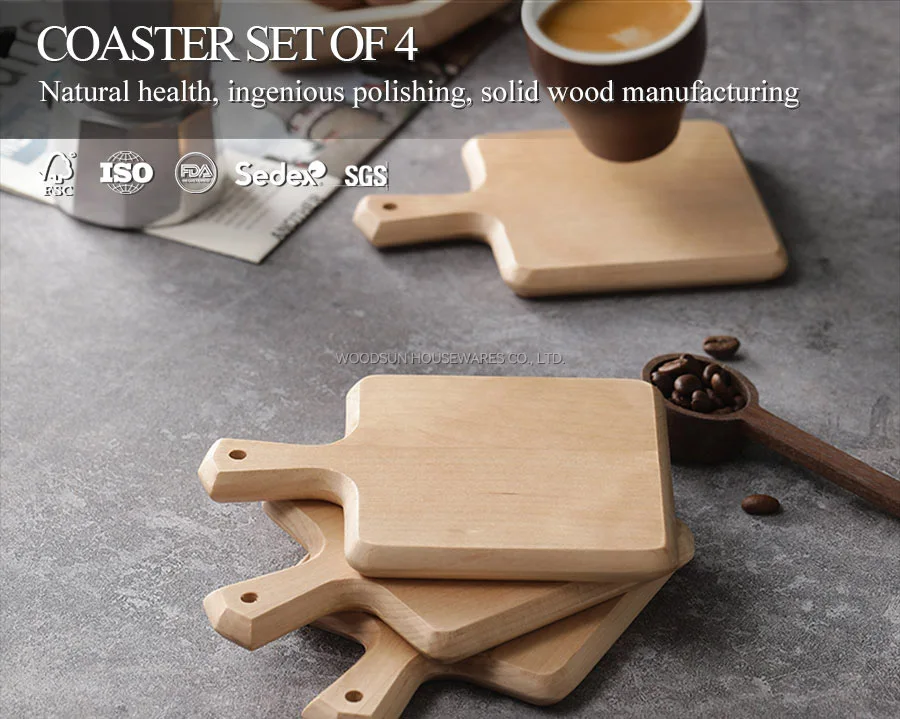 Woodsun Custom Modern Set of 4 Wood Coaster Holder Set