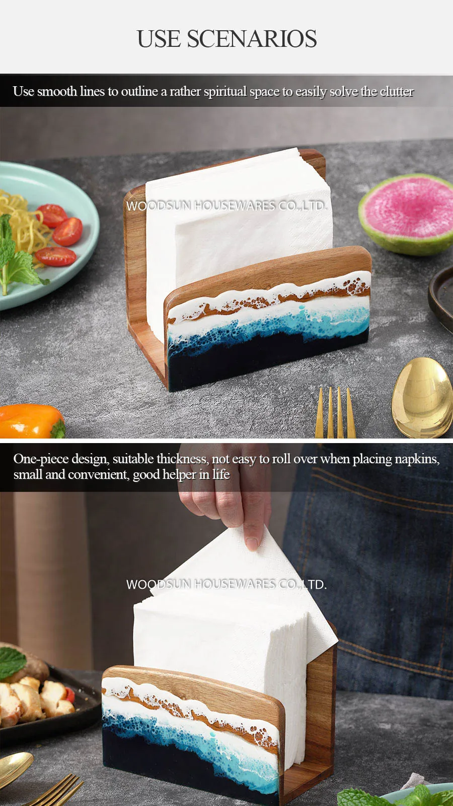 Woodsun Custom Sea Wave Design Napkin Holder Restaurant for Table