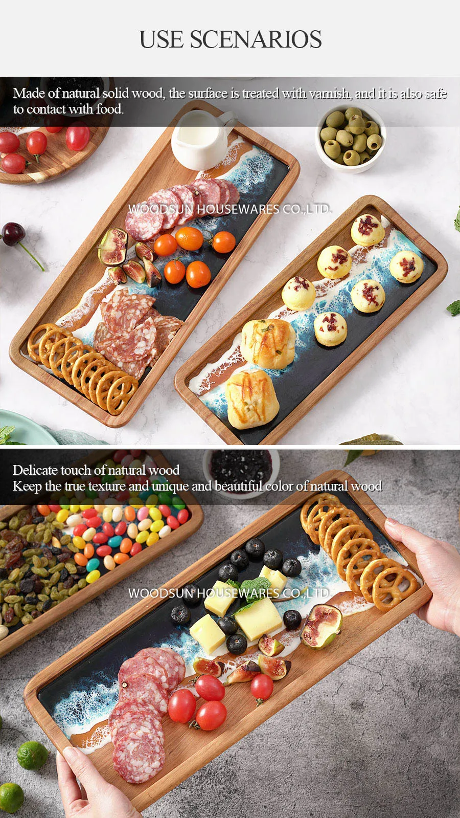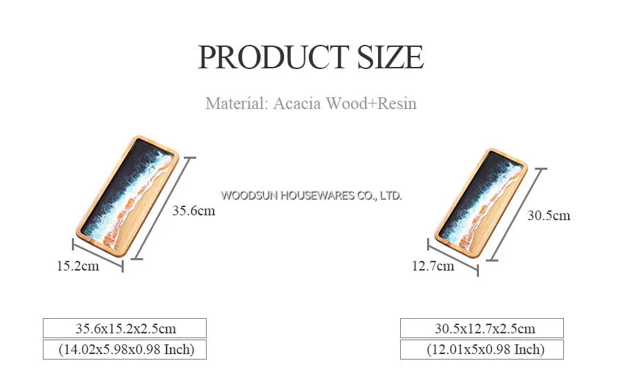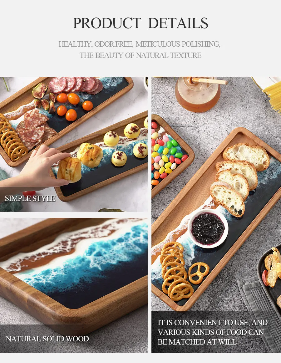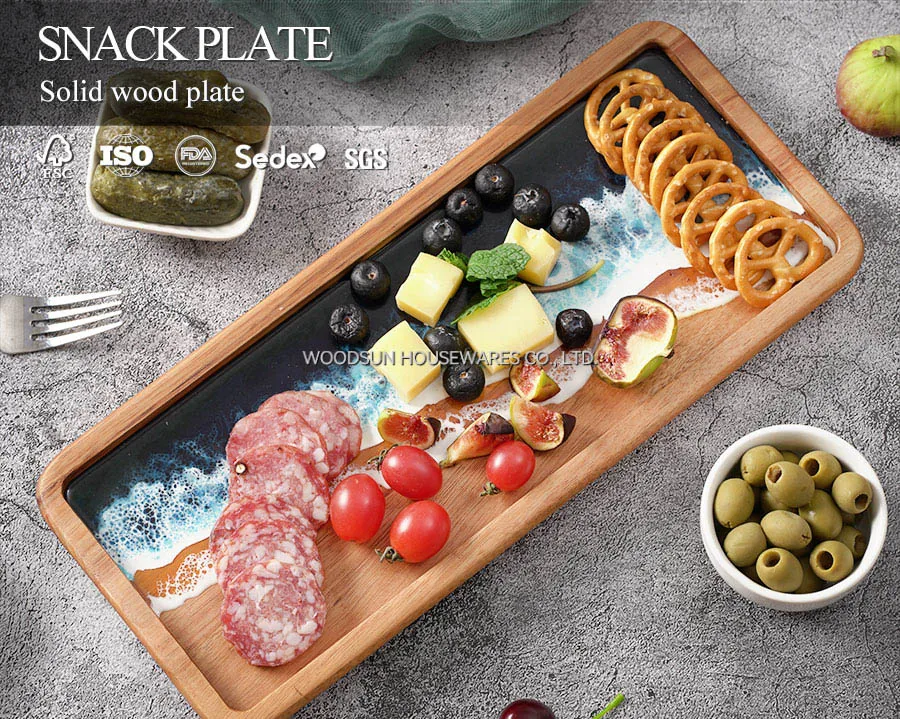 Woodsun Custom Sea Wave Resin Acacia Wooden Serving Fruit Plate