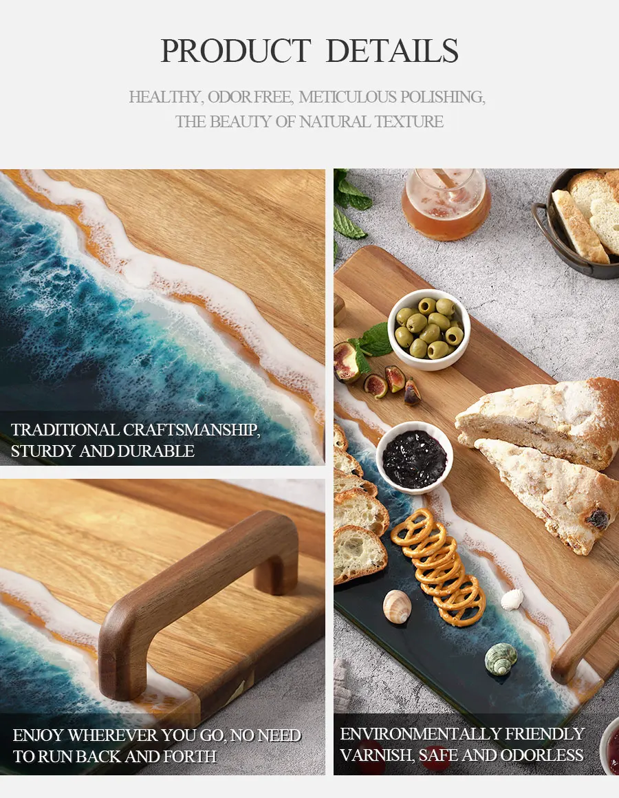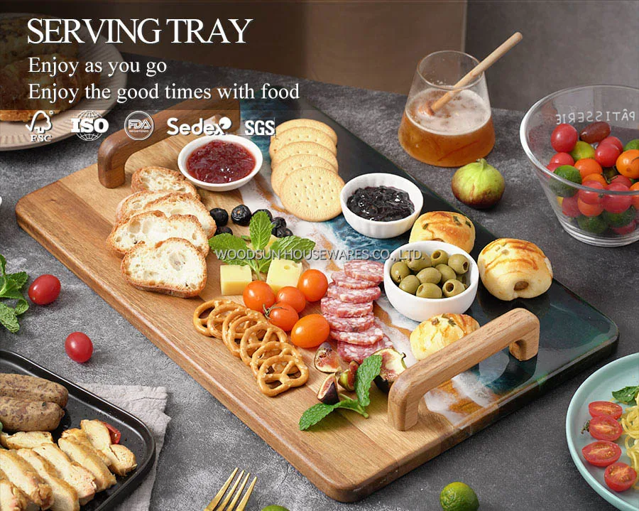 Woodsun Custom Sea Wave Resin Wooden Food Serving Trays Set for Restaurant