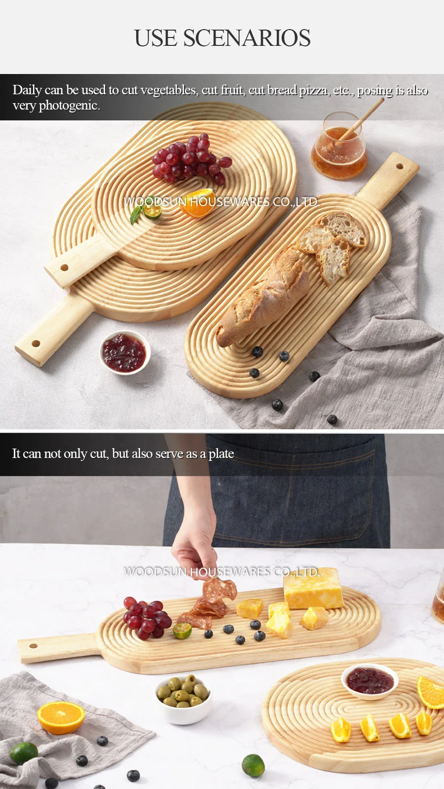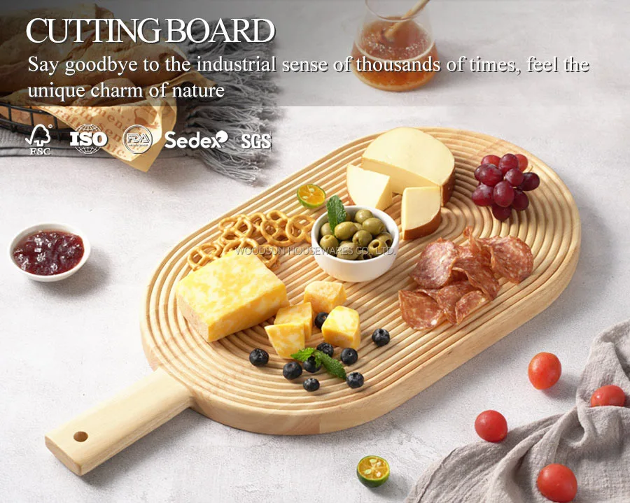 WOODSUN Custom Wooden Cutting Board Chopping Block Charcuterie Serving Board With Handle