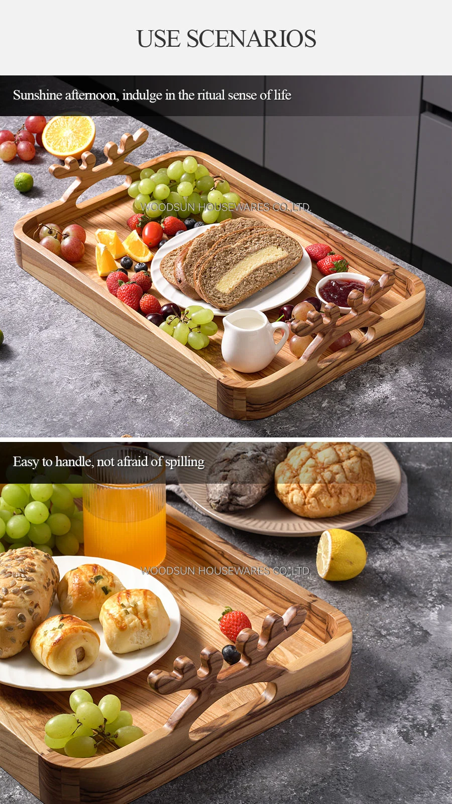 Woodsun Customization Bandejas De Madera Olive Wooden Serving Tray