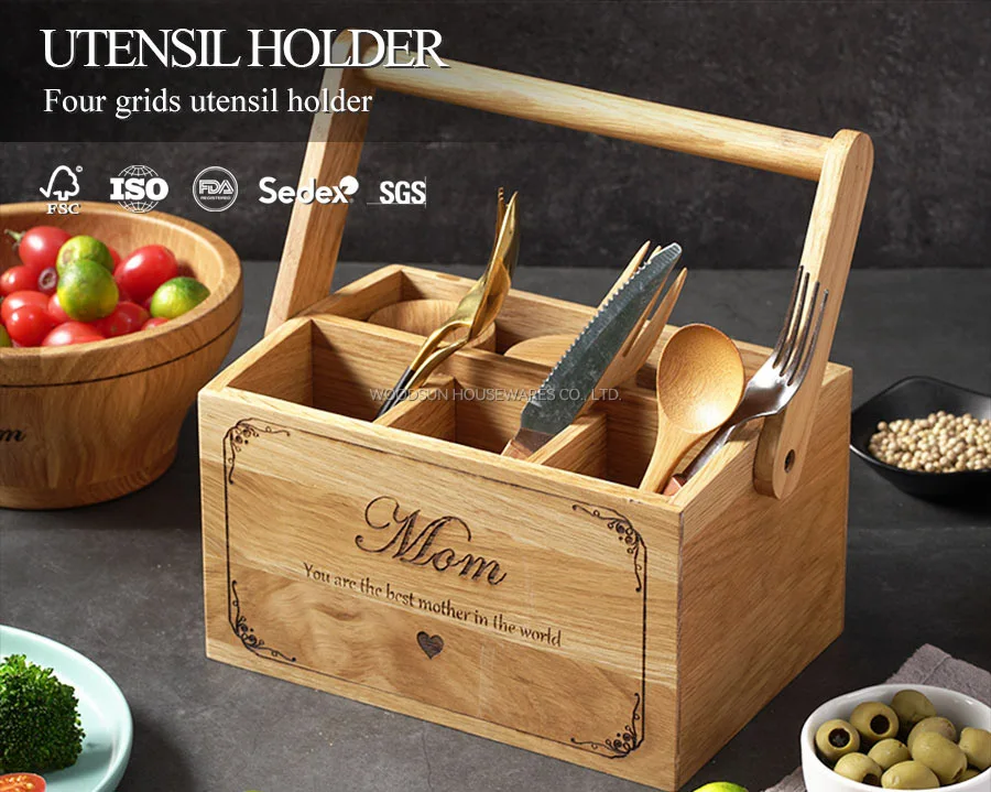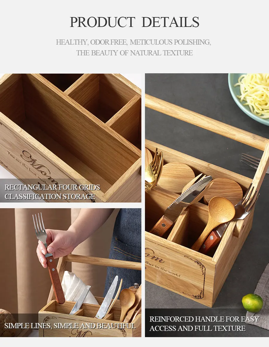 Woodsun Cutlery Drink Food Kitchen Storage Wood Gift Basket Wooden Handle
